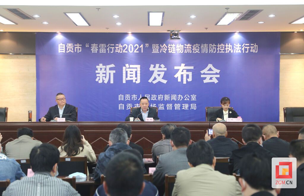 4月1日,自贡市“春雷行动2021”暨冷链物流疫情防控执法行动(以下简称“春雷行动2021”)新闻发布会召开。市市场监管局副局长喻峰、药品安全总监吴军胜出席会议介绍“春雷行动201”总体情况,发布行动期间典型案例,并现场回答记者提问。省、市10家主流新闻媒体应邀出席会议。市委宣传部、市市场监管局各科室负责人、各区县市场监管局相关负责人,共50余人参加发布会。