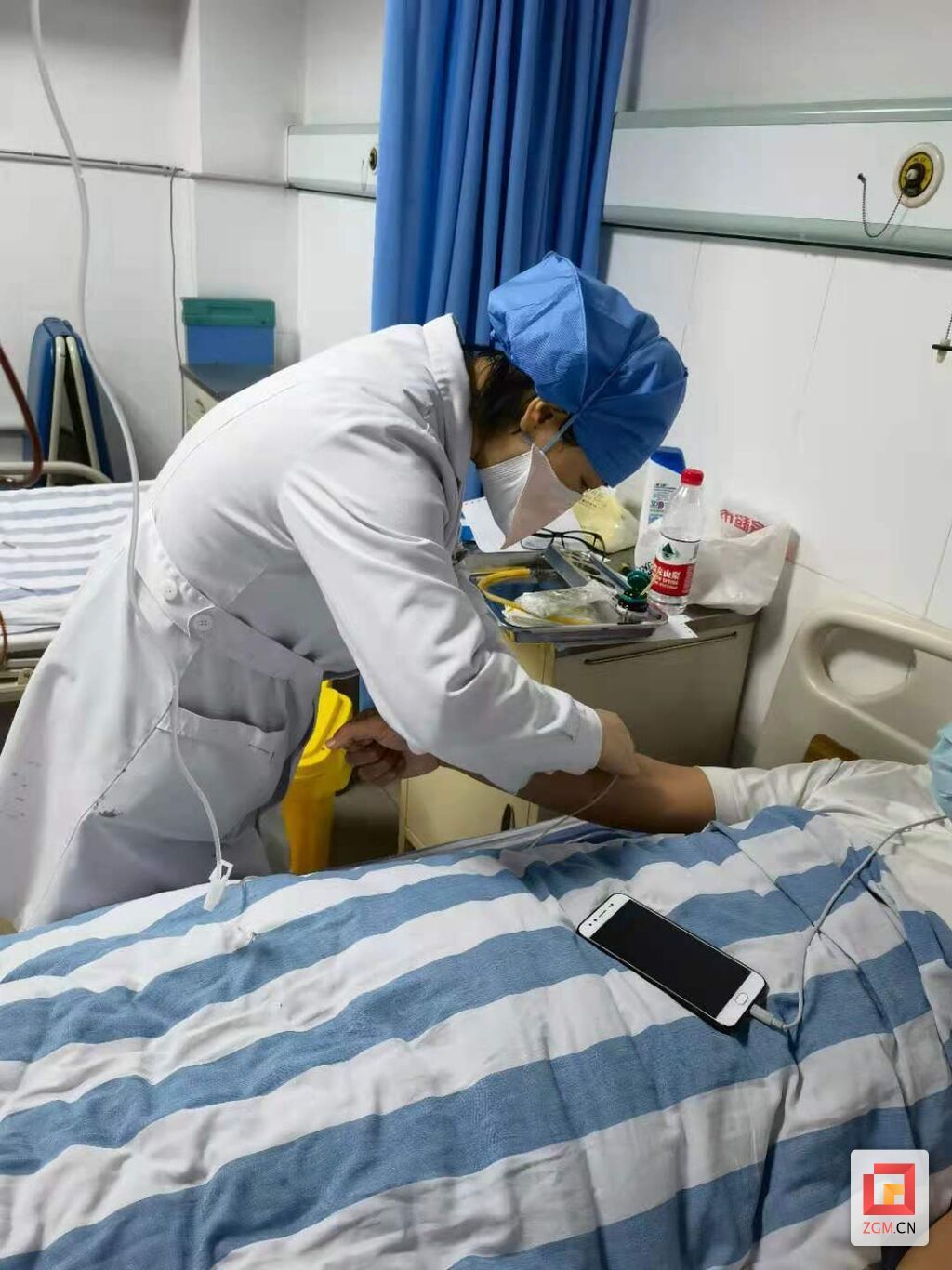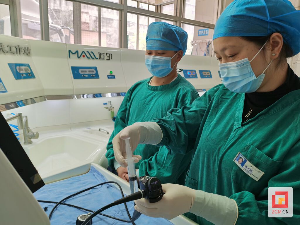 图:曹小燕在检查电子支气管镜