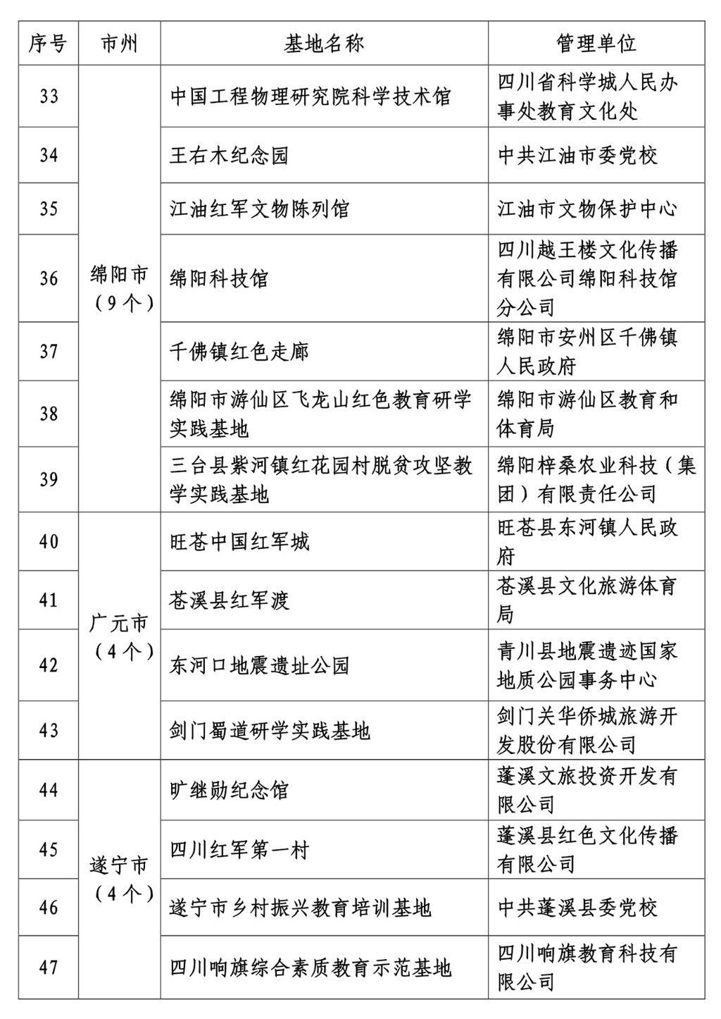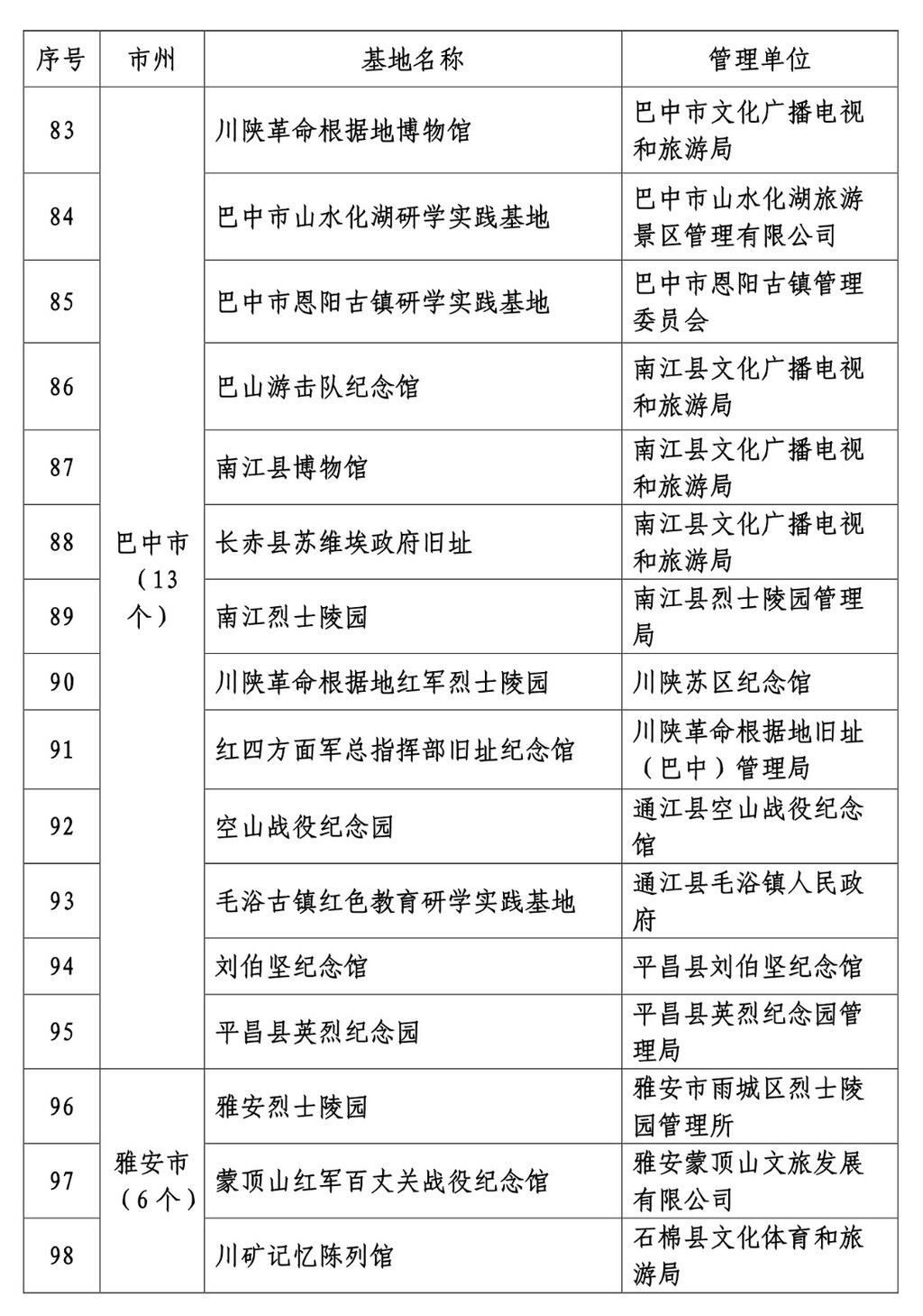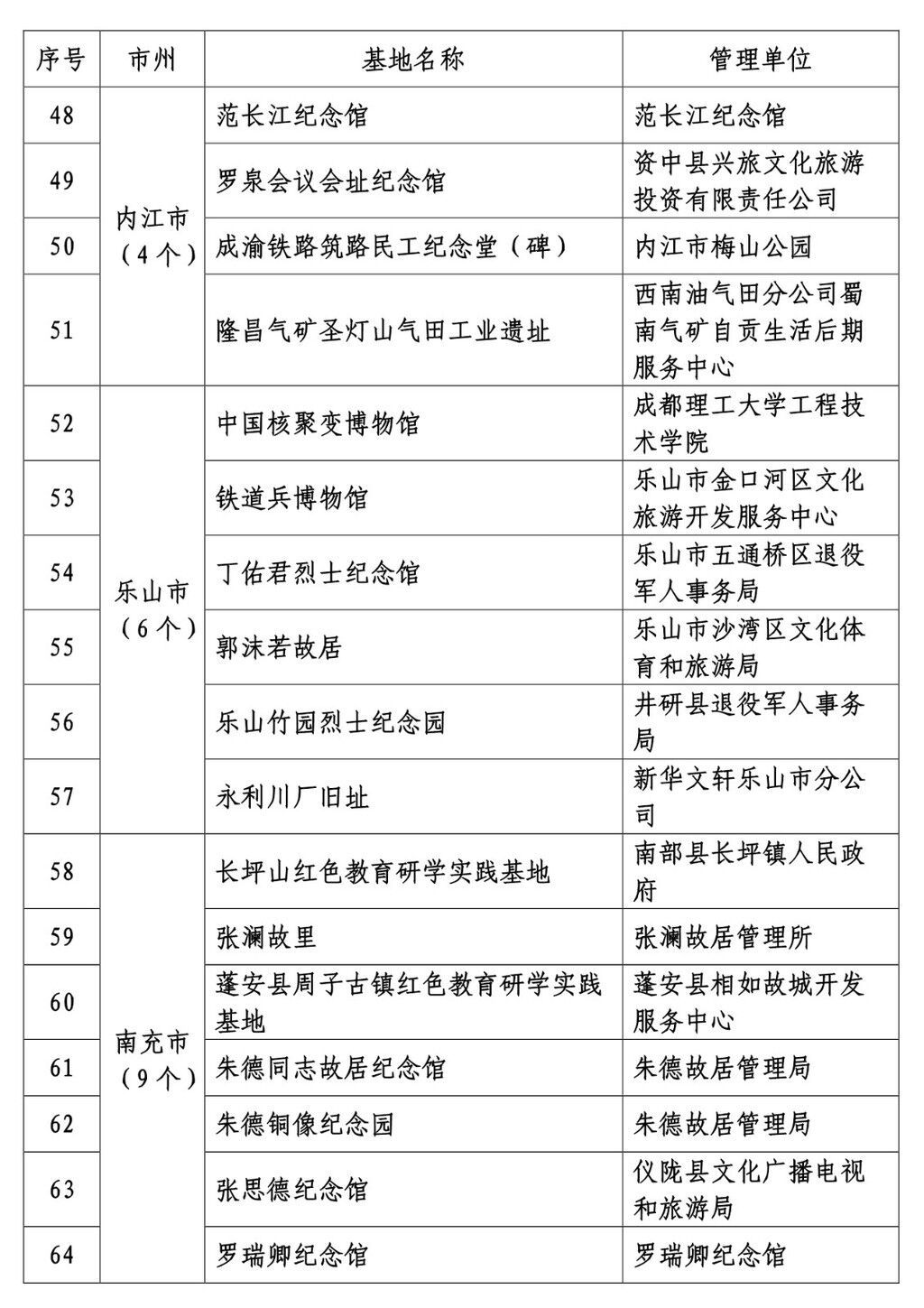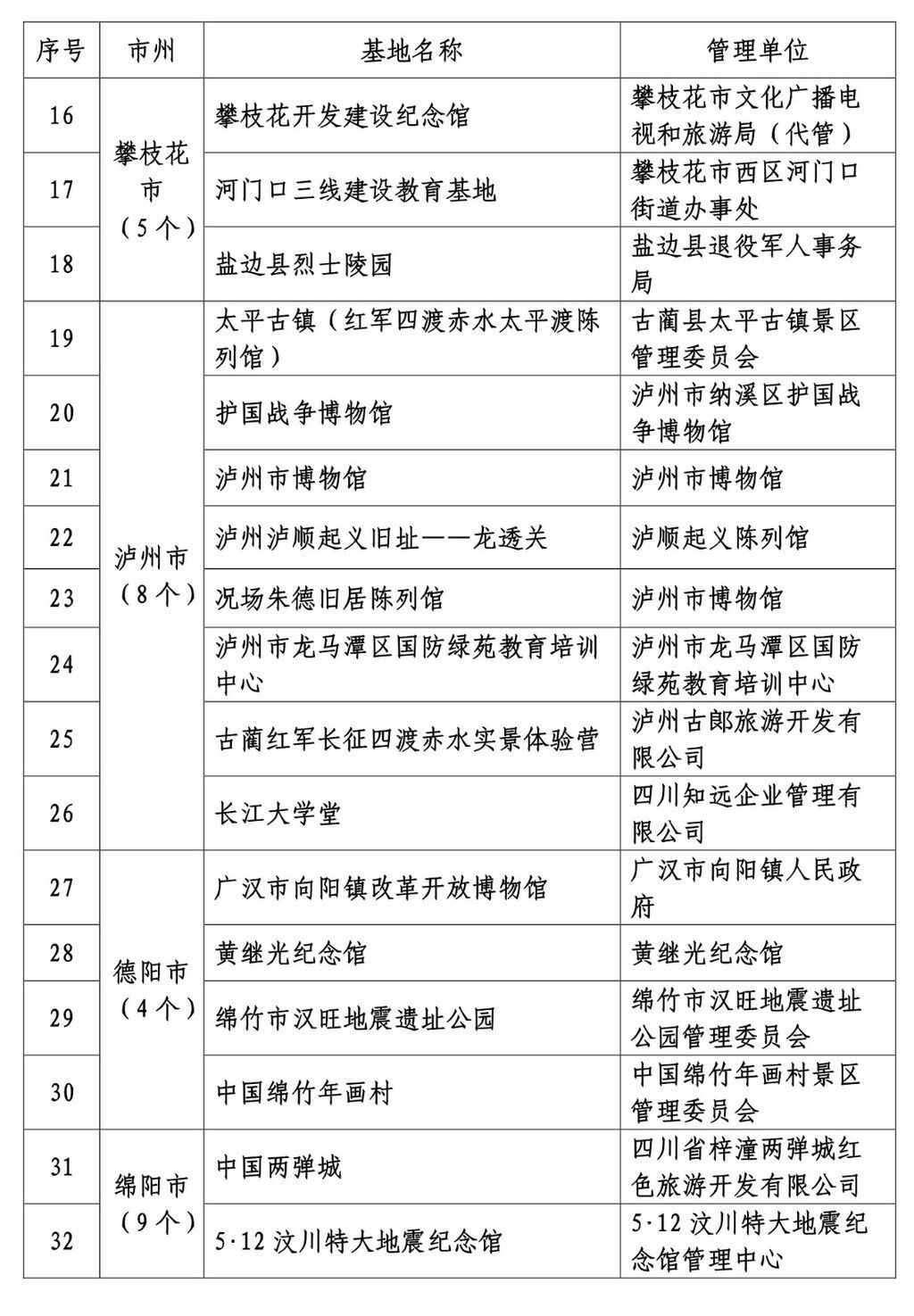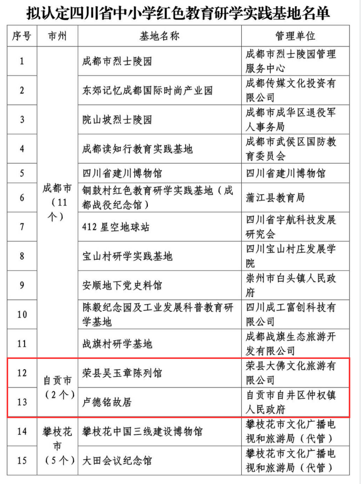 川观新闻记者4月8日从四川省教育厅获悉,根据相关要求,在各资源单位自主申报、市(州)初审的基础上,省教育厅、省文化和旅游厅、省林业和草原局组织党史、教育、研学方面的专家进行了评审。