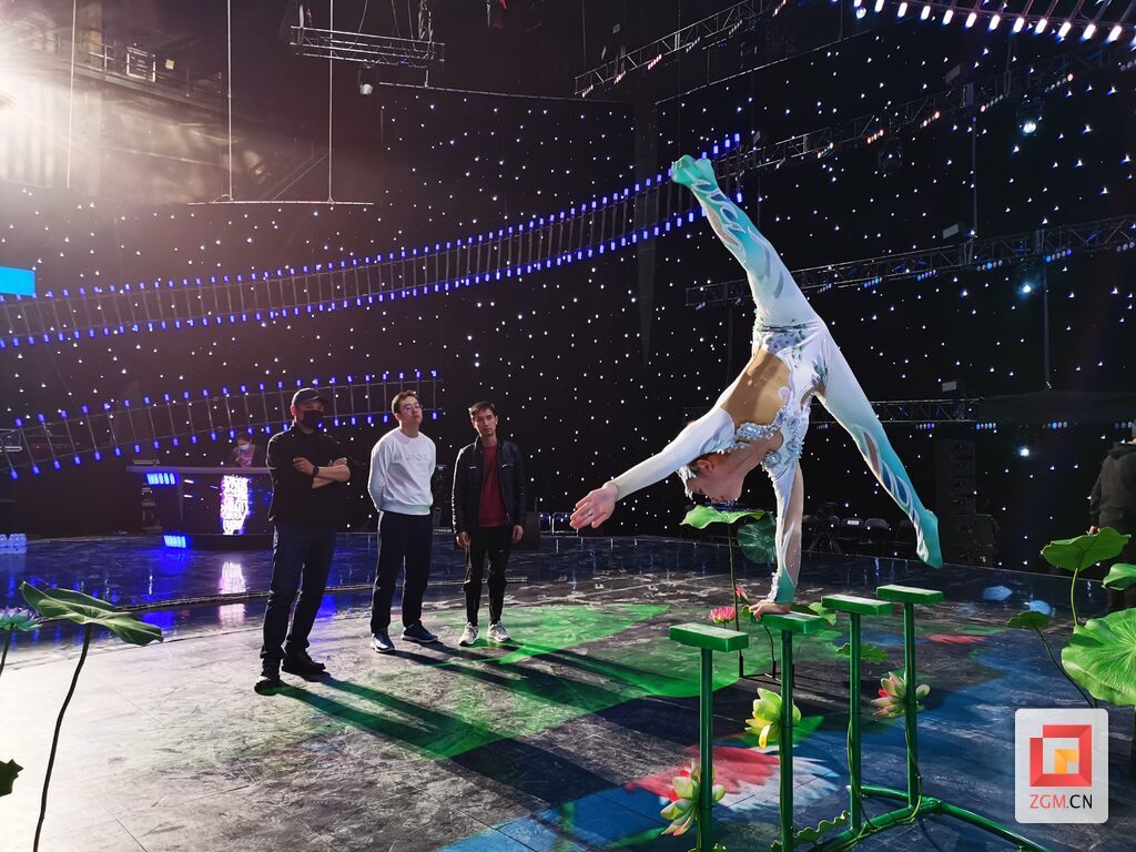 4月11日,在北京五维凤凰演播厅,自贡市杂技团演艺有限责任公司创排的杂技《倒立—荷塘精灵》开始了央视四套《环球综艺秀》的录制。据悉,《环球综艺秀》栏目将在今年“七一”前后播出自贡杂技《顶板凳—中国龙》和《倒立—荷塘精灵》。