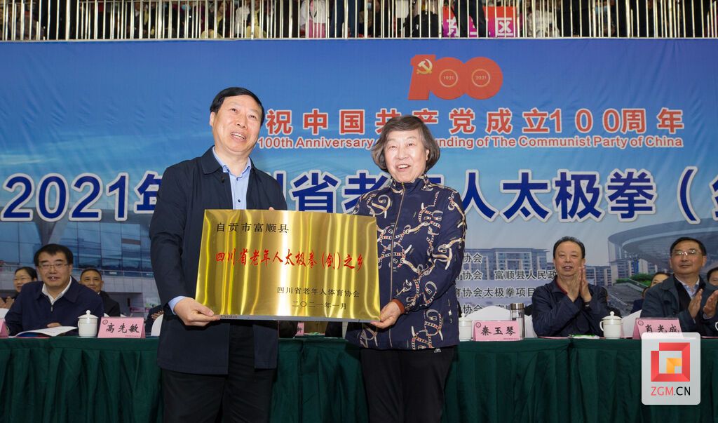 4月16日,2021年四川省老年人太极拳(剑)比赛在自贡市富顺县文体中心启幕。省政协原主席、省老体协主席秦玉琴宣布开幕并向四川省首个“老年人太极拳(剑)之乡”富顺县授牌。省政协原副主席、省老体协执行主席肖光成致开幕词,省人大常委会原副主任、省老体协副主席李洪仁宣读《关于同意自贡市富顺县“四川省老年人太极拳(剑)之乡”的通知》。自贡市委书记范波致欢迎辞,市政协主席游开余等出席开幕式。