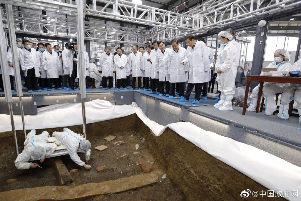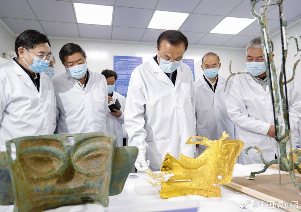 4月19日,李克强来到四川广汉三星堆考古发掘现场。现场负责人介绍,三星堆此次考古发掘又有新的重大发现。总理认真听取情况介绍并仔细察看发掘现场后说,看到这么多学科的年轻学者,在今天这样一个快速发展的时代,仍然专注于考古事业,心还是静的,这很不容易。你们在现代社会发掘古代遗址,实际上是在发现和传承中华文化的根基。从早年的殷墟发掘,到二里头,再到今天三星堆的大面积发掘,你们要仔细比较、研究其中的关系。
