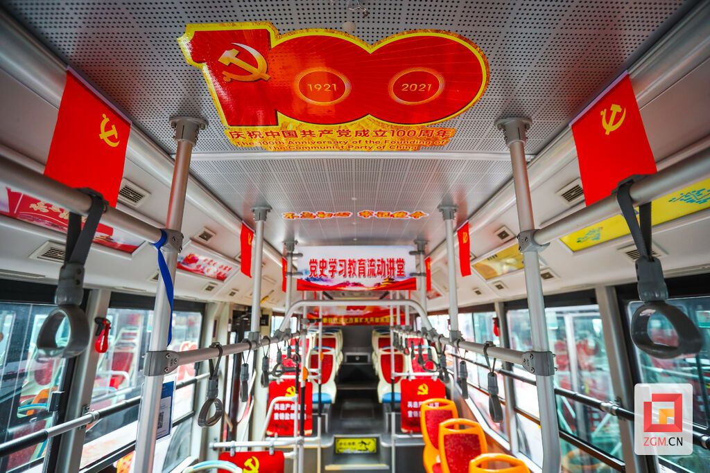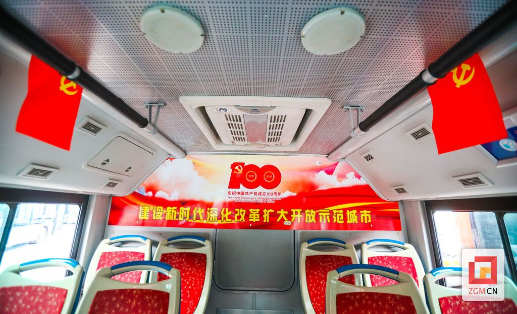 “我们充分整合自身资源,发挥公交车受众面广、宣传面宽的特点,以更好地营造浓厚党史学习教育氛围,庆祝中国共产党成立100周年。”自贡公交集团相关负责人向记者介绍,他们认真设计制作了11台共产党员号车组和16台指定公交车身、车内装饰,涵盖了党史学习教育、100周年庆祝标识、自贡本地革命先驱事迹等主题元素,并在车内LED、车尾彩屏和车载视频刊播标语和党史学习教育相关视频,这27辆“党史学习教育流动讲堂”公交车覆盖11条公交线路。