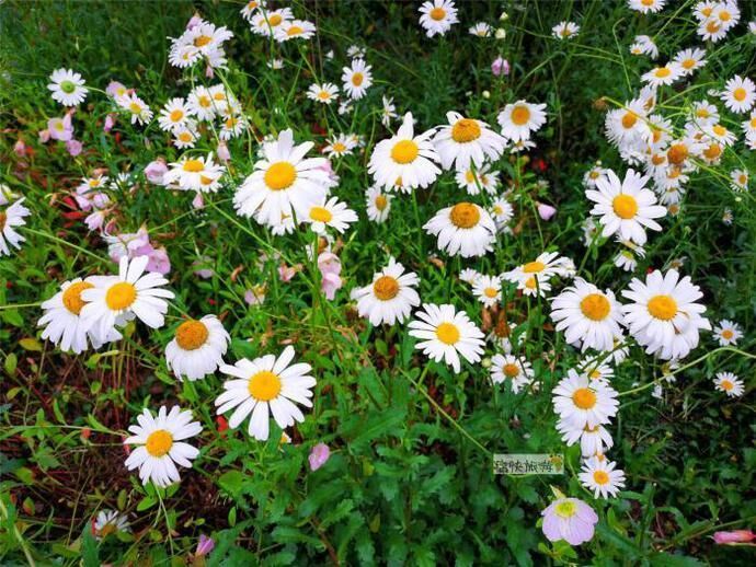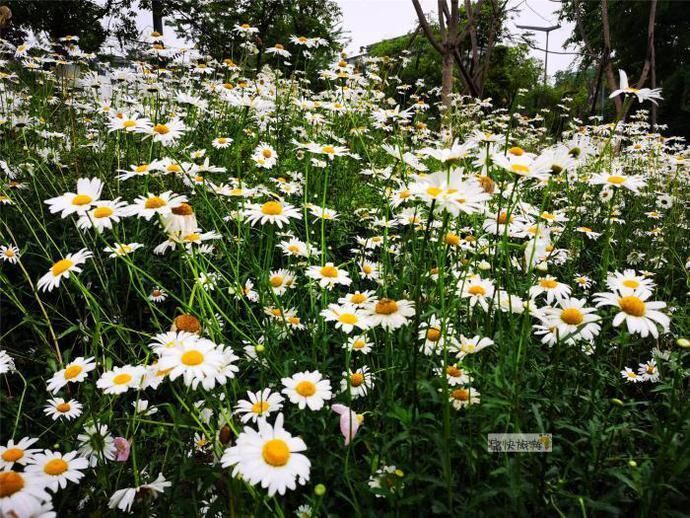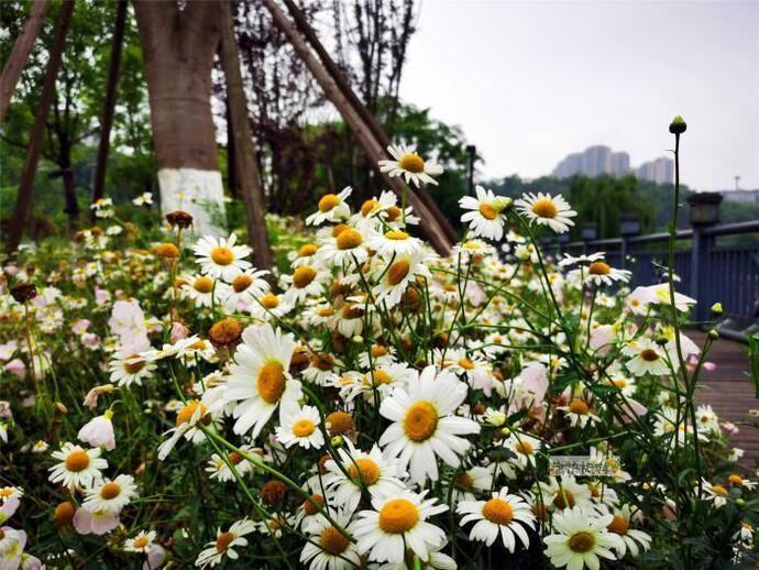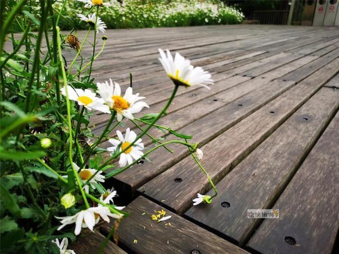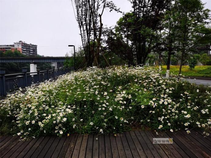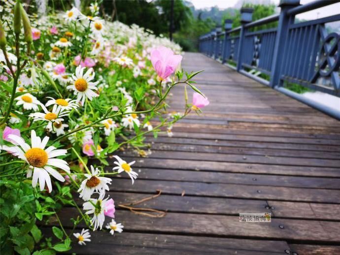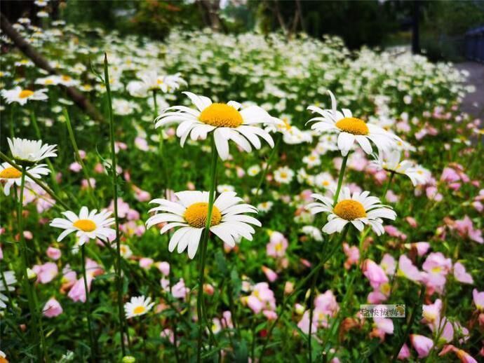 雨后漫步自贡釜溪河畔,刚刚过水涯居大桥不远的步道旁,一大片美丽的白色菊花就吸引住了我们的目光。随后通过识花软件得知为滨菊,属菊科、多年生或二年生草本植物。