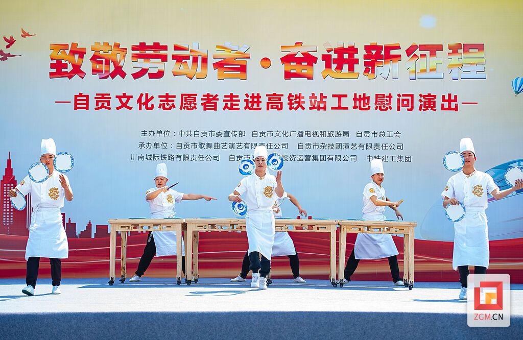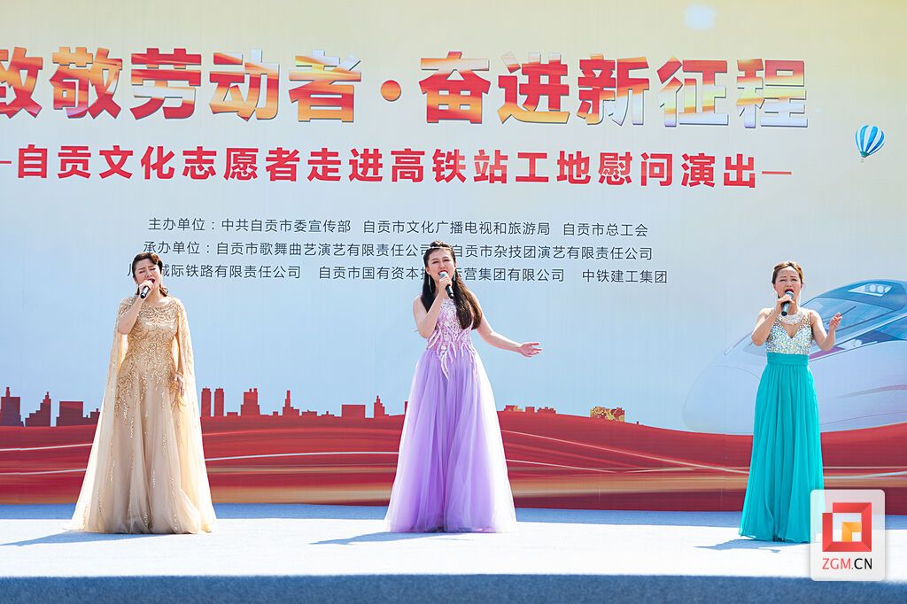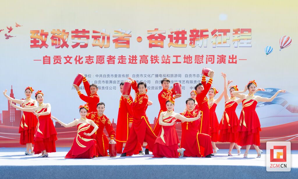 致敬劳动者,奋进新征程。4月30日,自贡文化志愿者走进高铁自贡站工地开展慰问演出,用精品文艺节目歌颂劳动者、弘扬工匠精神,营造崇尚劳动、赞美劳动者的社会氛围,庆祝建党100周年。市委宣传部部长、一级巡视员唐杰致辞。