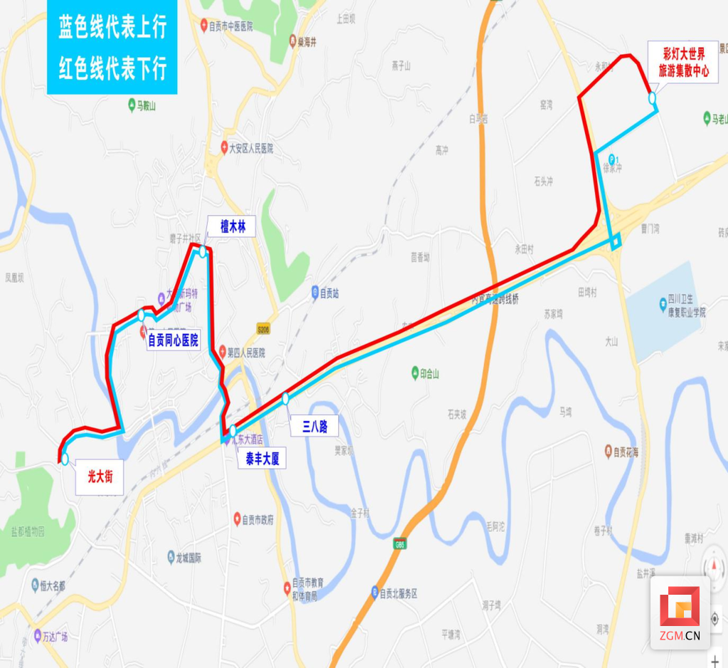5号线:光大街—自贡同心医院—檀木林—泰丰大厦—三八路—彩灯大世界旅游集散中心