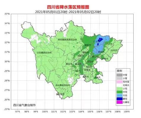 根据气象资料分析,2020年5月1日20时-5月2日20时,广元市北部、绵阳市西北部、巴中市西北部发生地质灾害气象风险等级较高。请注意预防。