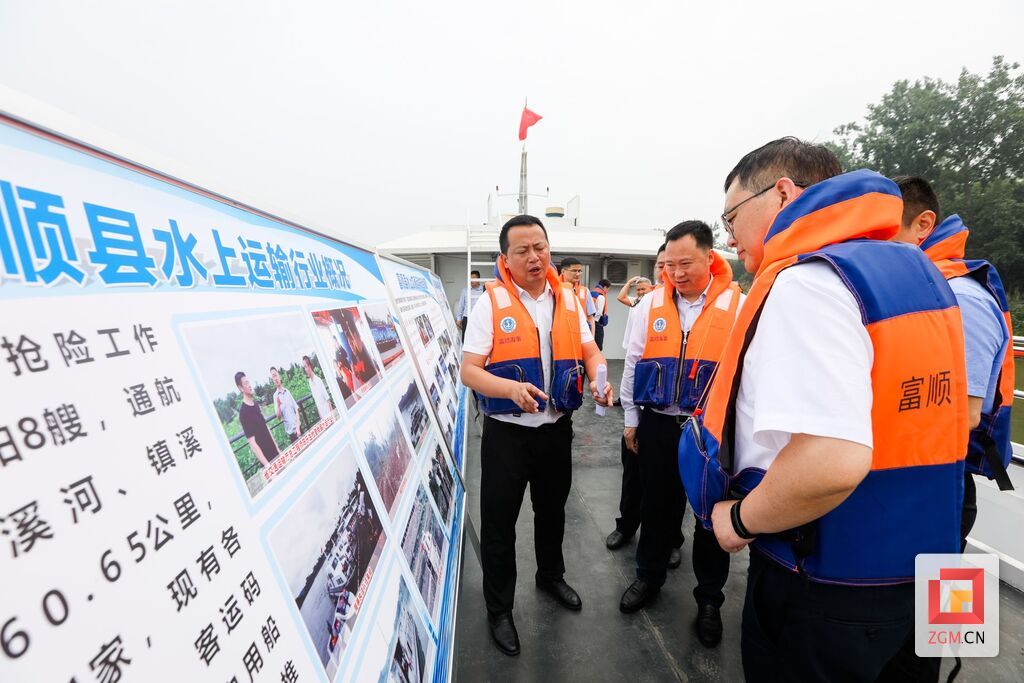 调研组先后来到“夜游釜溪”水上旅游码头、自贡市亿度储能科技有限公司和沱江航道,对我市“水运+旅游”发展情况、光伏产品在水运行业信息化的应用和沱江航道自贡段等级提升工程进展情况进行了解。在沱江沿线自用船集中停靠区,调研组听取了我市富顺县走在全省前例的“三无”船舶整治后自用船规范管理。