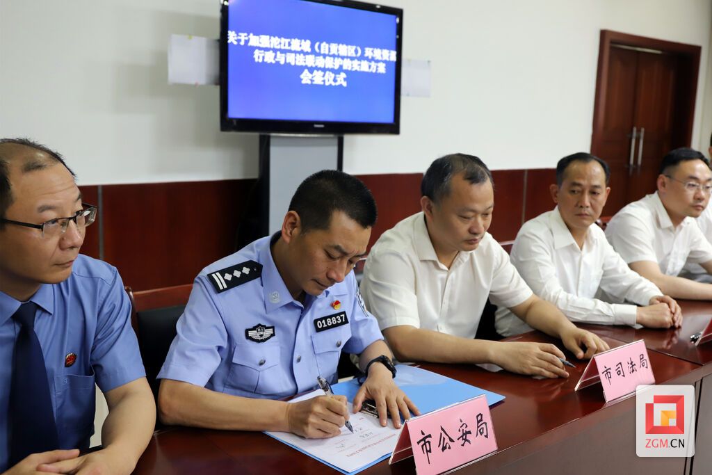 5月14日下午,市法院、市检察院、市公安局、市司法局、市自然资源和规划局、市生态环境局、市交通运输局、市水务局、市农业农村局、市市场监管局等单位联合签署《关于加强沱江流域(自贡辖区)环境资源行政与司法联动保护的实施方案》(以下简称《实施方案》),标志着我市加强环境资源保护、推动生态文明建设再添“坚盾”。