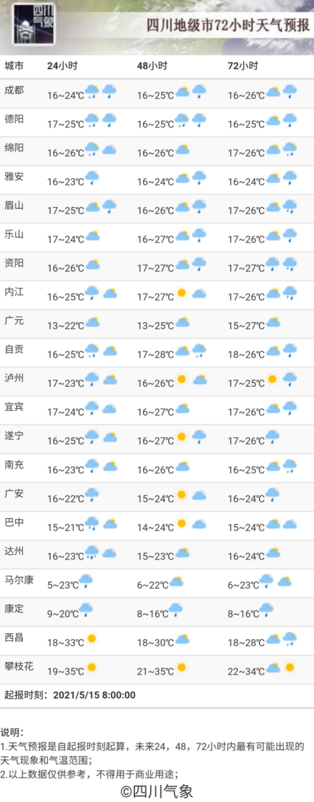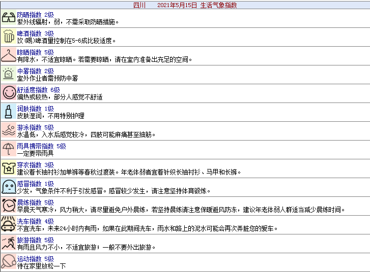 四川省公共气象服务中心给出的生活建议是这样子的↓↓↓