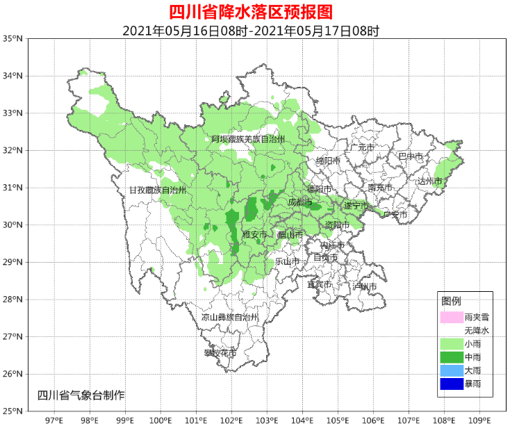 16日白天到晚上,盆地大部多云,其中成都、雅安、眉山、乐山、资阳、遂宁、达州7市多云间阴有阵雨,局地中雨;川西高原阴天间多云有分散阵雨或雷雨;攀西地区晴间多云。