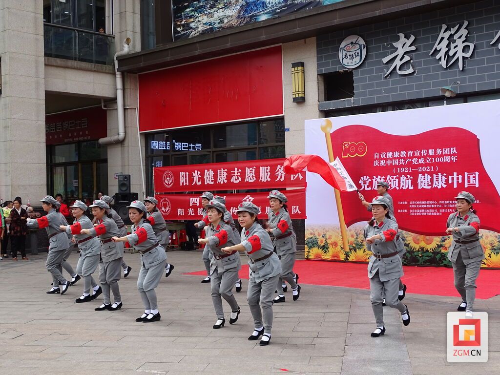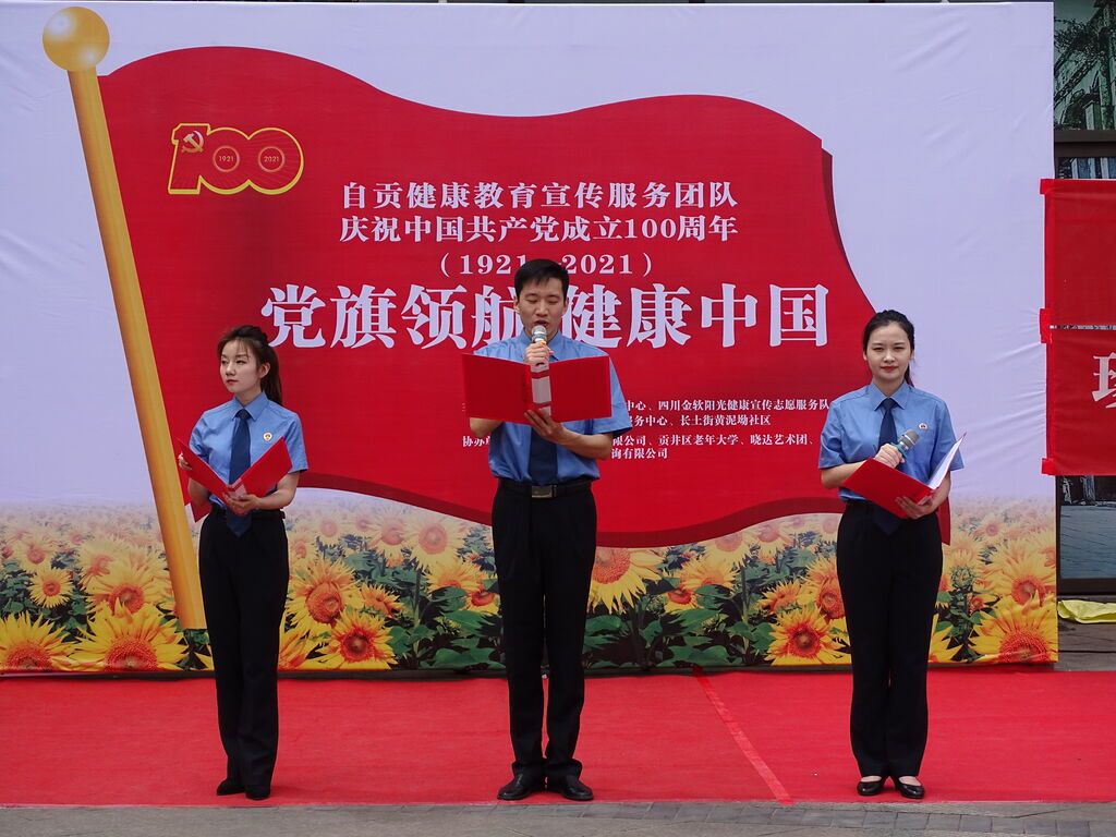 载歌载舞贺盛世,真情流露颂党恩。5月16日,自贡健康教育宣传服务团队庆祝中国共产党成立100周年主题活动在长土街黄泥坳社区举行,以群众喜闻乐见的形式充分展现了我市健康志愿者的爱党之情和精神风貌。此次活动的主题为“党旗领航 健康中国”,由贡井区疾控中心、四川金软阳光健康宣传志愿服务队、贡井区友益健康教育服务中心、长土街黄泥坳社区共同主办,自贡市晟盛科技有限公司、贡井区老年大学、晓达艺术团、自贡市公信管理咨询有限公司协办。