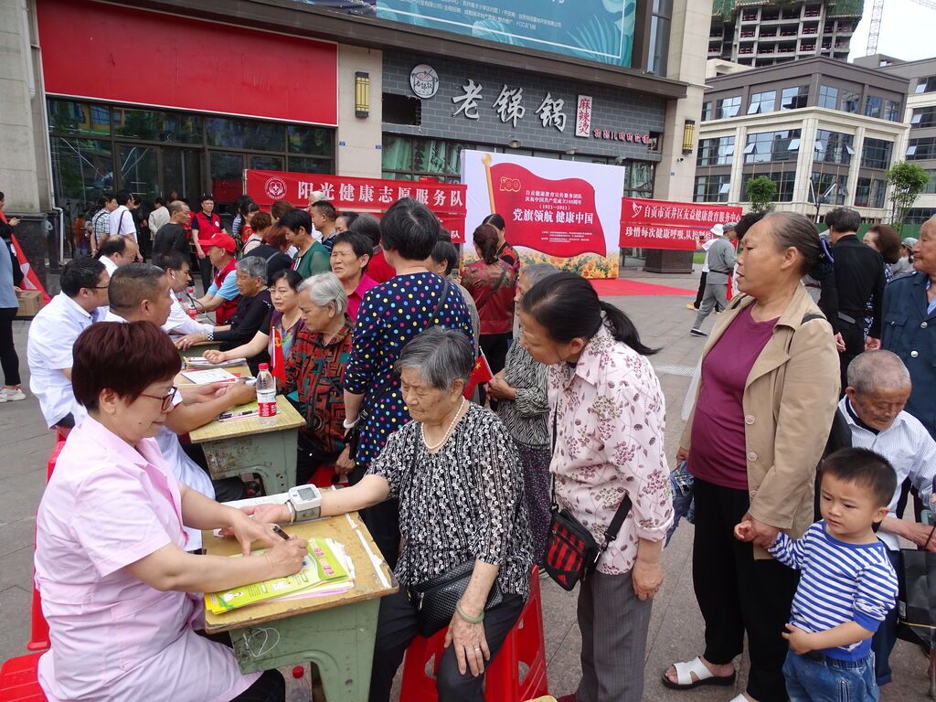 这一边,男声小合唱《把一切献给党》、舞蹈《红色娘子军》选段、快板《百年伟大共产党》、诗朗诵《逆行者之歌》等节目先后登场,精彩不断;那一边,来自阳光健康宣传志愿服务队的医务工作者给群众测血压、问病情、送资料,关怀备至。这场在社区广场上的活动,虽然没有传统的“舞台”,却令人印象深刻,处处体现出活动组织者和参与者“我为群众办实事”的一片真情。