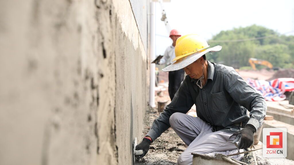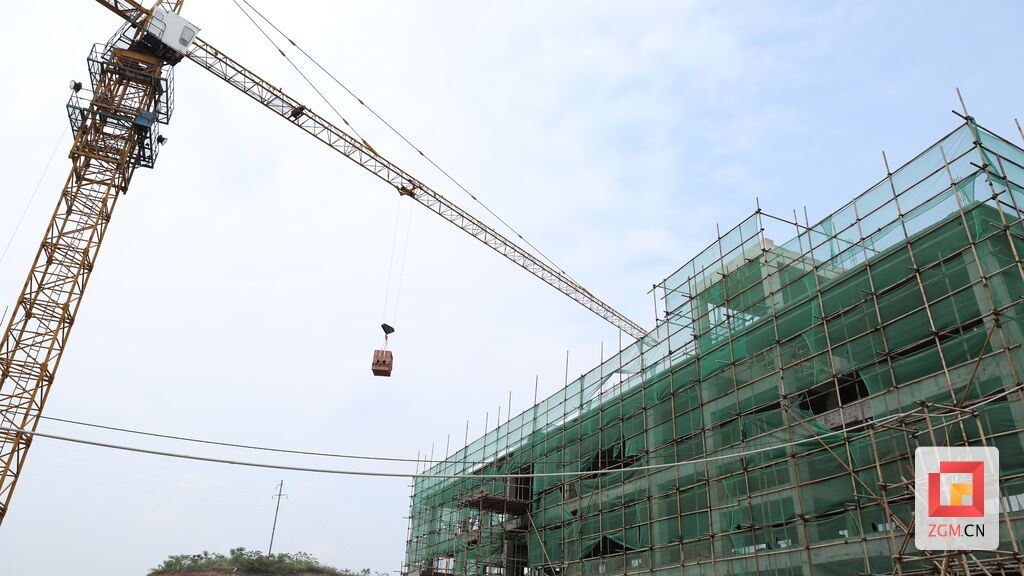 施工机械在轰鸣声中运转,工人们在工地上挥汗奋战……