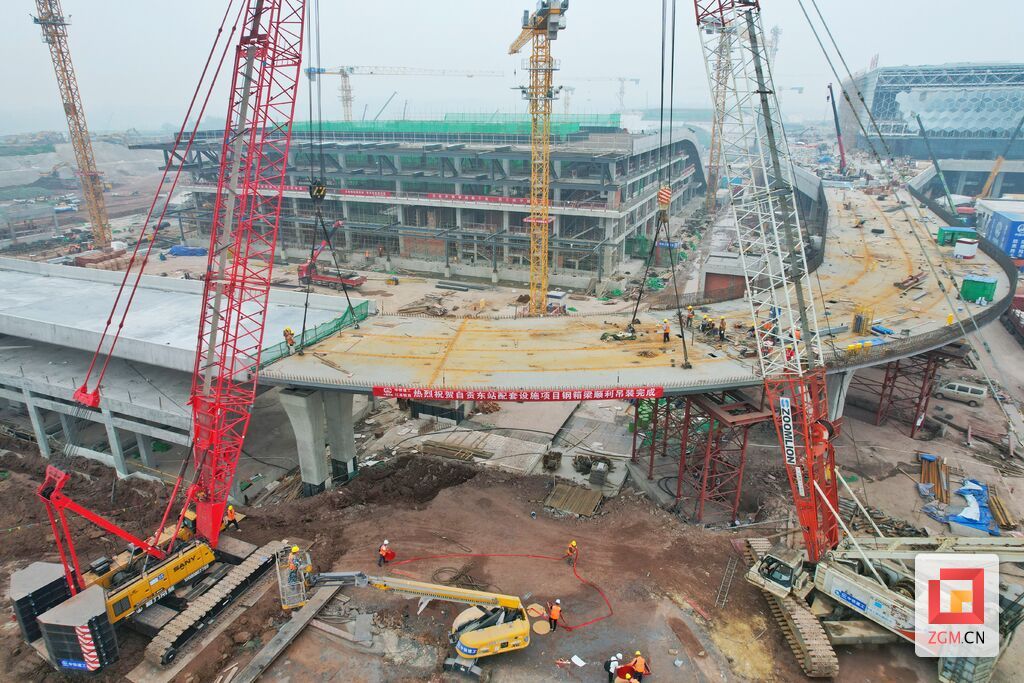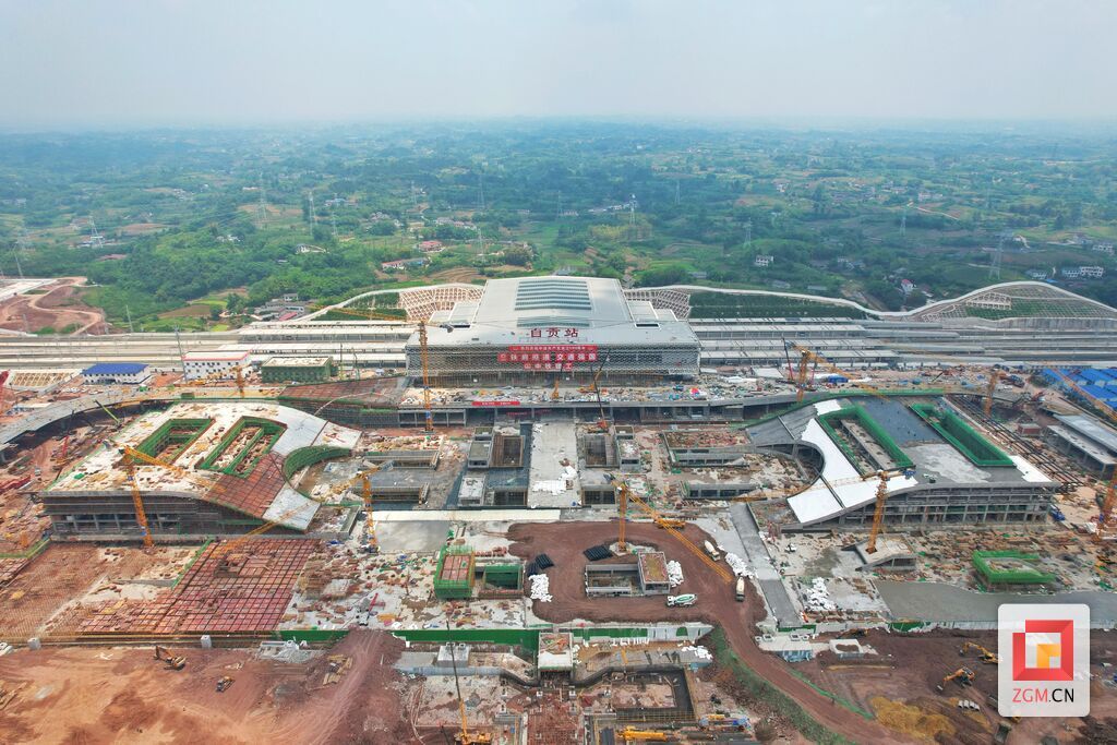 其中高铁自贡站配套设施的房建工程地下换乘中心和游客集散中心主体结构完成,综合客运枢纽主体结构完成98%。