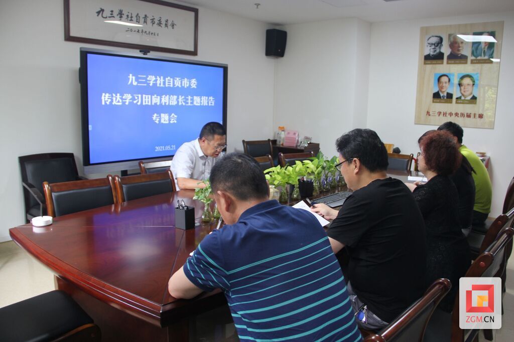 5月21日下午,九三学社自贡市委召开专题学习会议,传达学习中共四川省委常委、统战部部长田向利在全省统战部长读书班开班式上的主题报告精神。社市委机关全体干部职工参加专题学习。