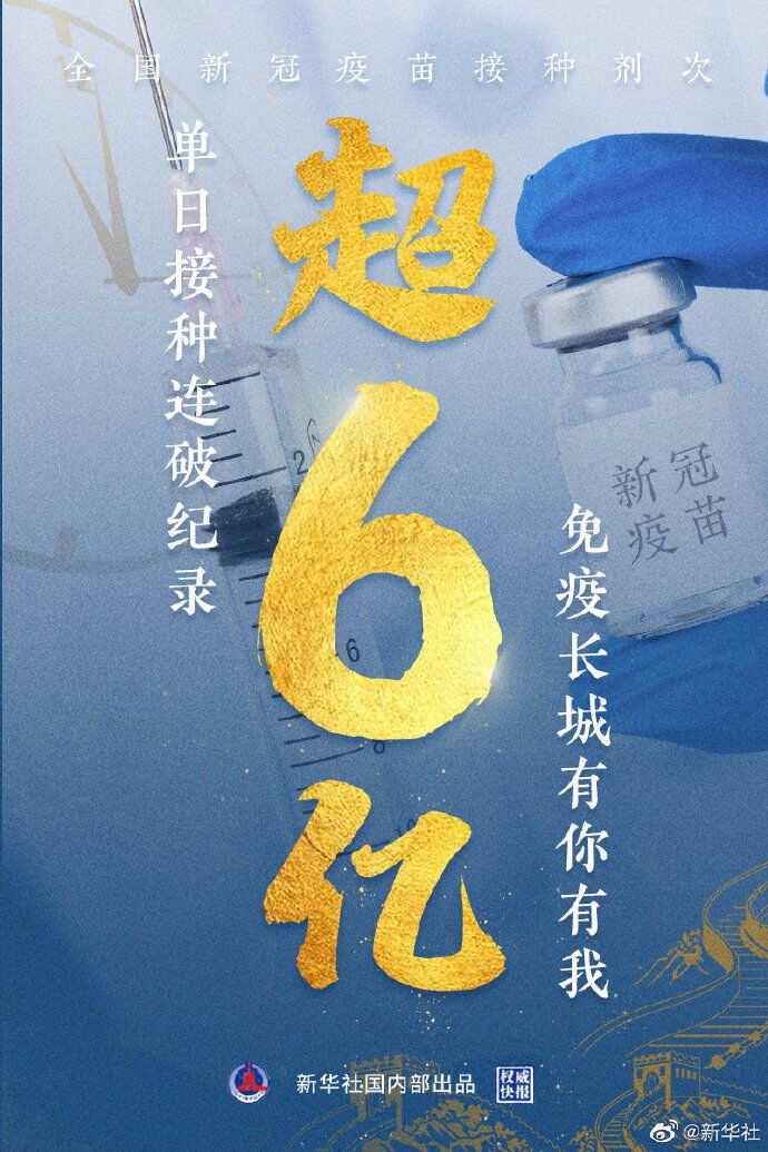 国家卫健委29日通报,全国新冠病毒疫苗接种超过6亿剂次。自3月27日超过1亿剂次以来,每亿剂次所需时间为25天、16天、9天、7天、5天,间隔不断缩短,这是疫苗接种的中国速度。