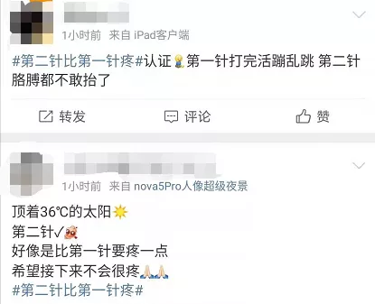 疫苗话题#第二针比第一针疼#