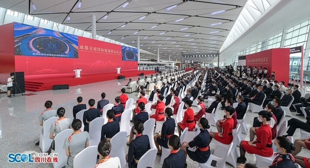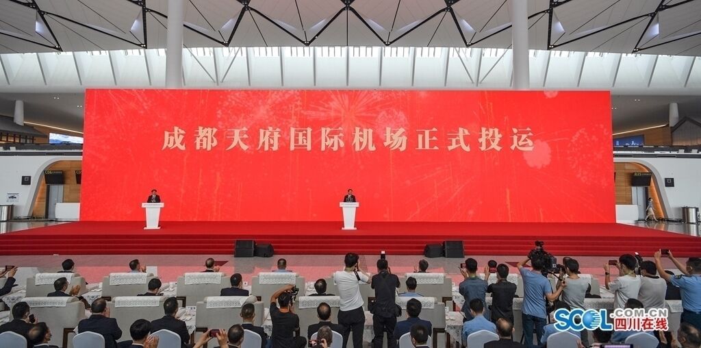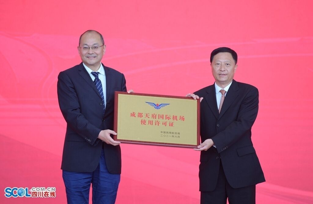 省委常委、常务副省长罗文主持投运仪式。仪式上播放了专题片《天府之翼》,中建八局、中航集团、省机场集团负责同志发言,民航西南管理局向省机场集团颁发成都天府国际机场使用许可证。