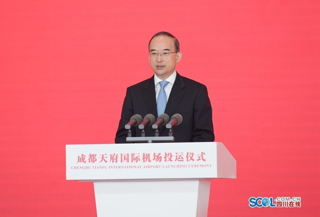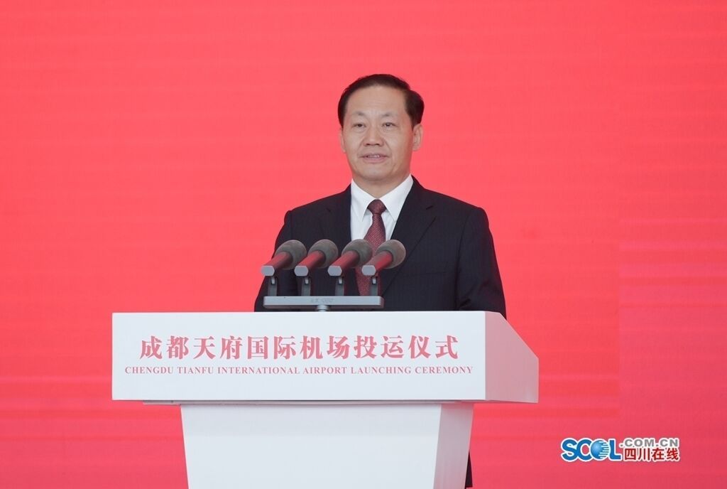 王志清在致辞中代表交通运输部对成都天府国际机场正式投运表示祝贺。他说,成都天府国际机场是成渝地区双城经济圈枢纽集群的重要节点。这一重大工程建成投运,对于完善国家综合立体交通网、提升我国民航国际竞争力意义重大。希望成都天府国际机场进一步夯实安全基础,不断提升服务水平,持续完善枢纽集疏运体系,大力发展临空产业。交通运输部将继续在集疏运体系完善、产业有效融合、体制机制规制创新等方面持续发力,全力支持四川省将成都天府国际机场打造成综合交通枢纽高质量发展的样板。