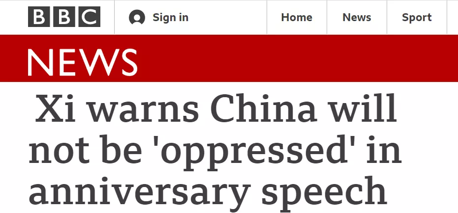 英国广播公司:习近平在庆祝大会演讲中告诫称,中国不会被压迫