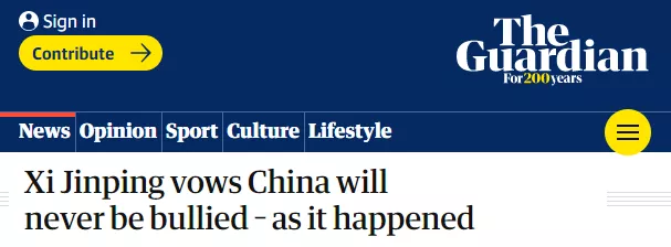 卫报:习近平郑重宣告称,中国饱受欺凌的时代一去不复返了