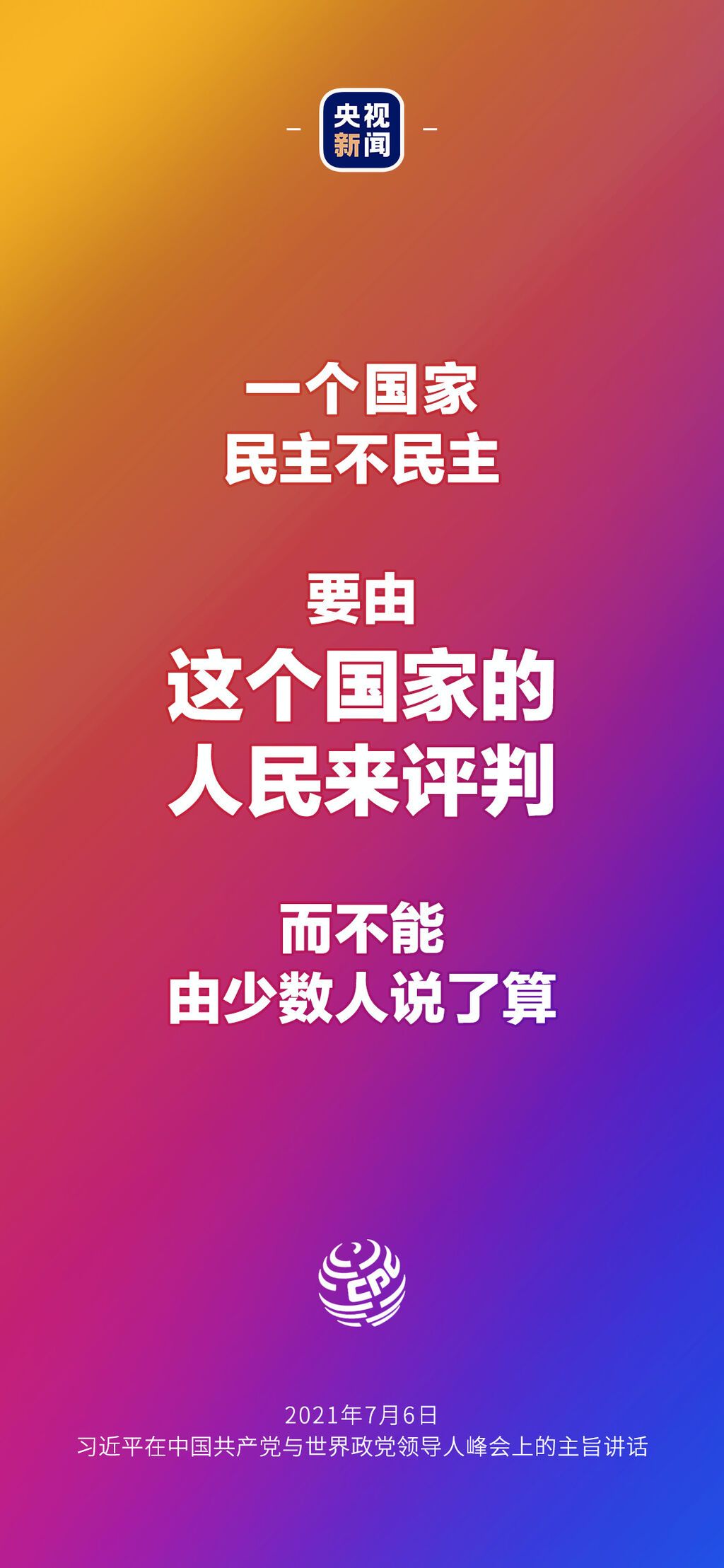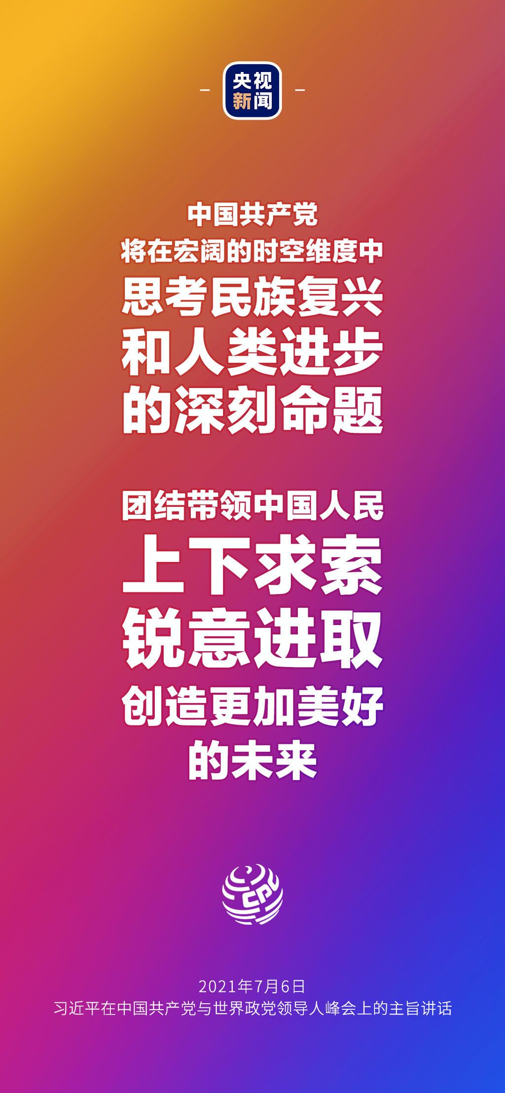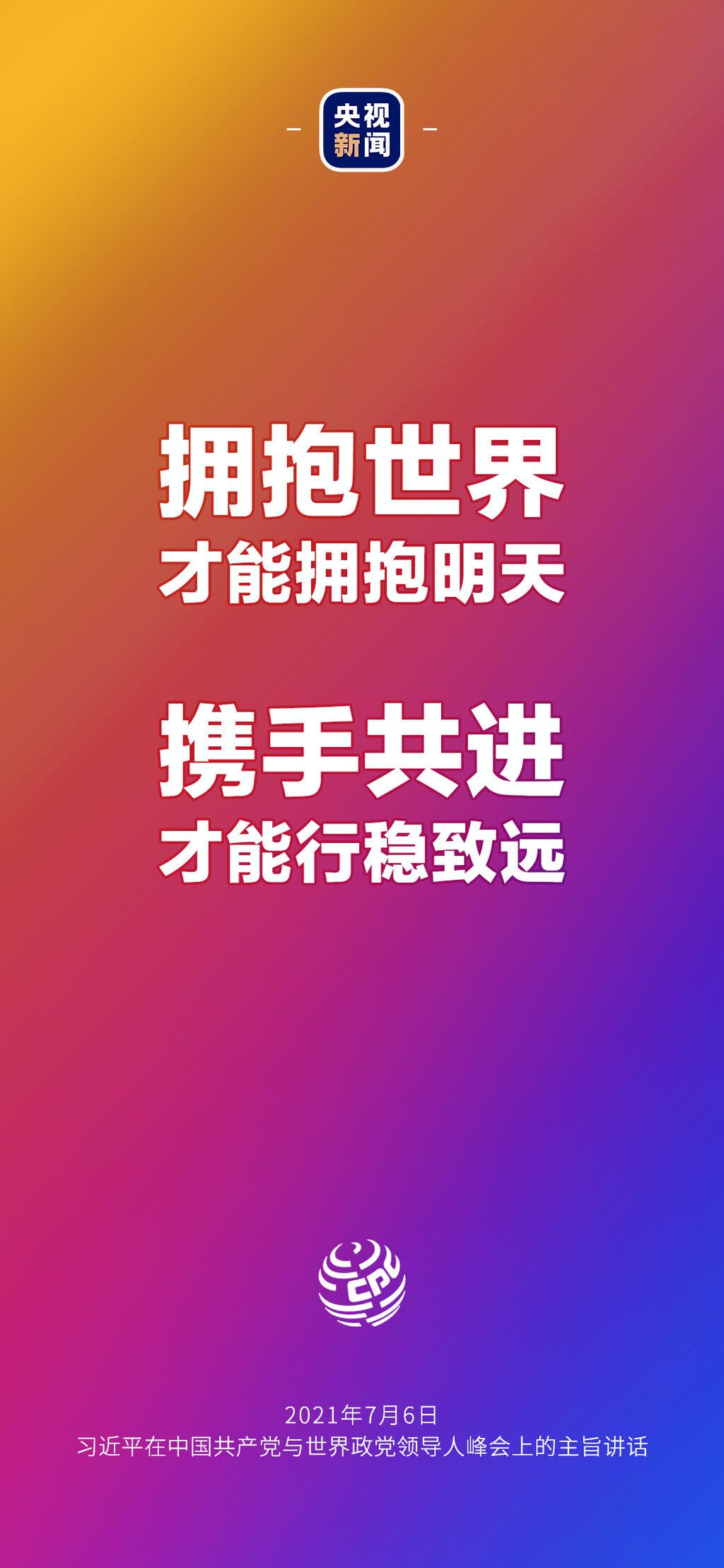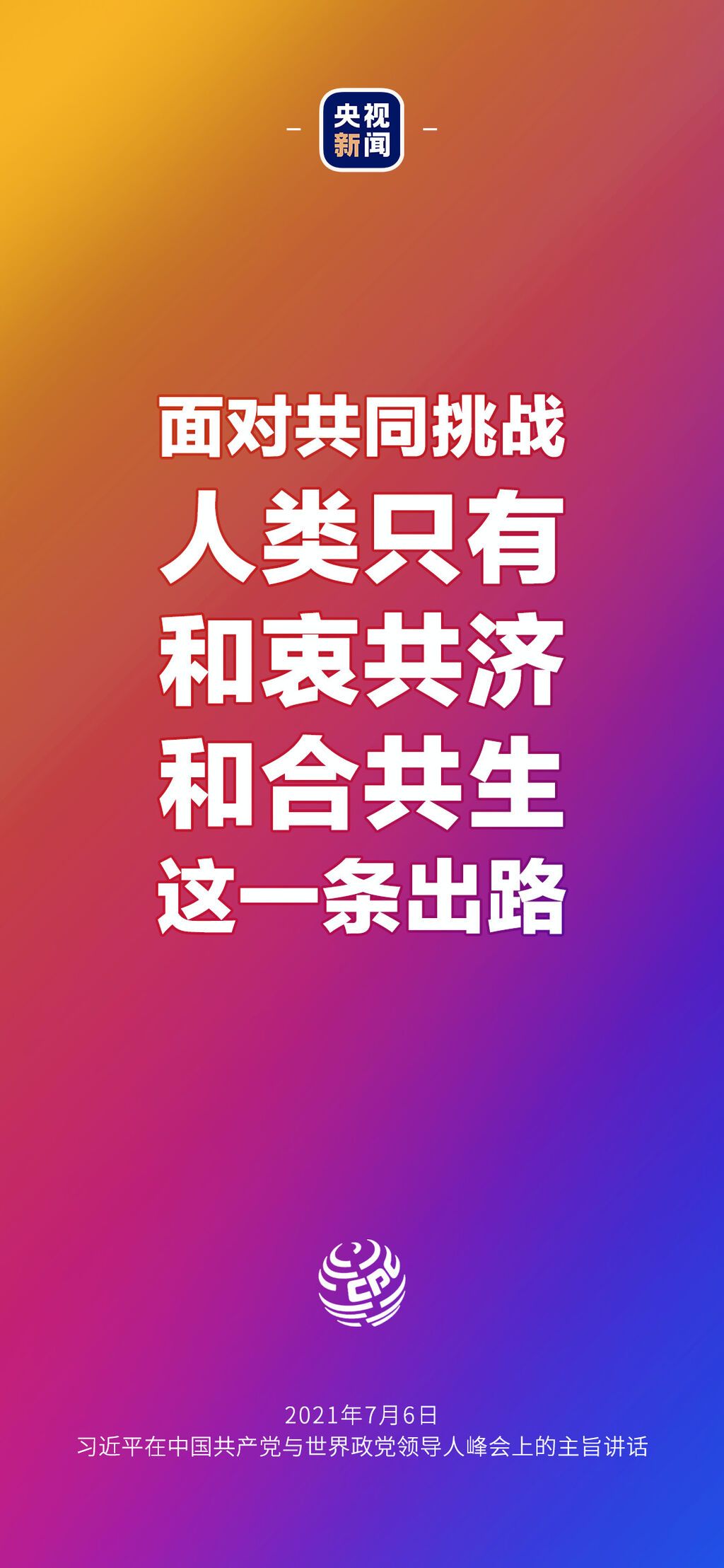 7月6日晚,中国共产党与世界政党领导人峰会以视频连线方式举行,160多个国家的500多个政党和政治组织的领导人以及逾万名政党代表出席了会议。中共中央总书记、国家主席习近平在北京出席会议并发表主旨讲话,讲话向世界传递了哪些中国声音?看梳理→