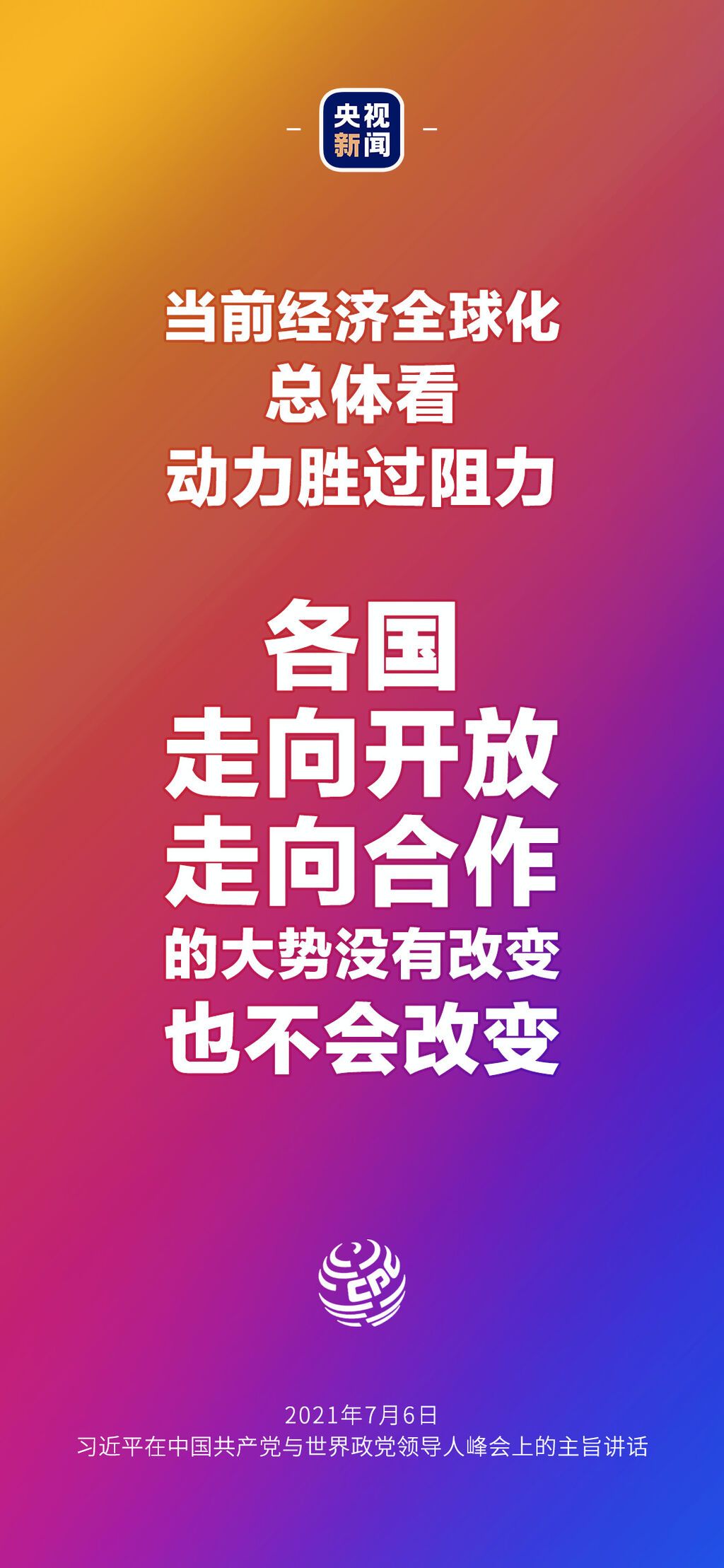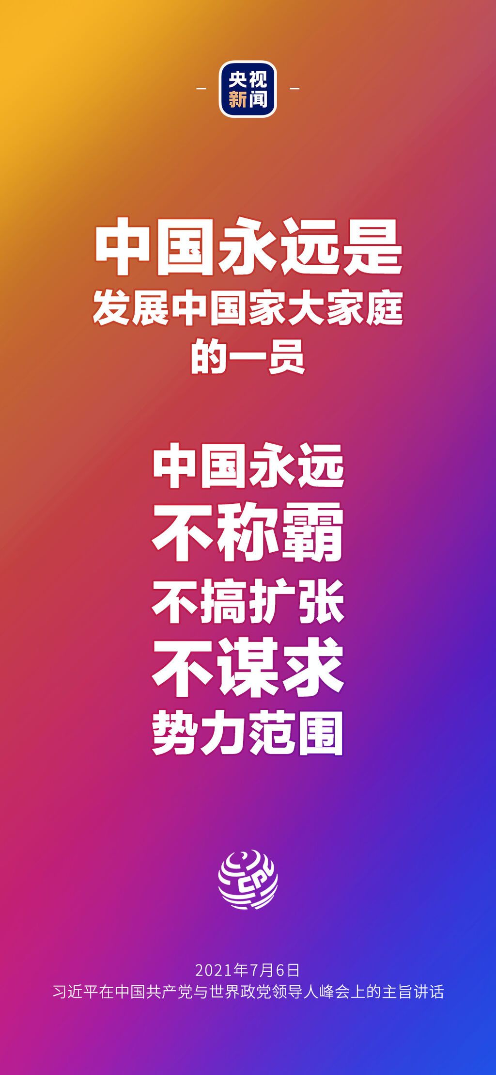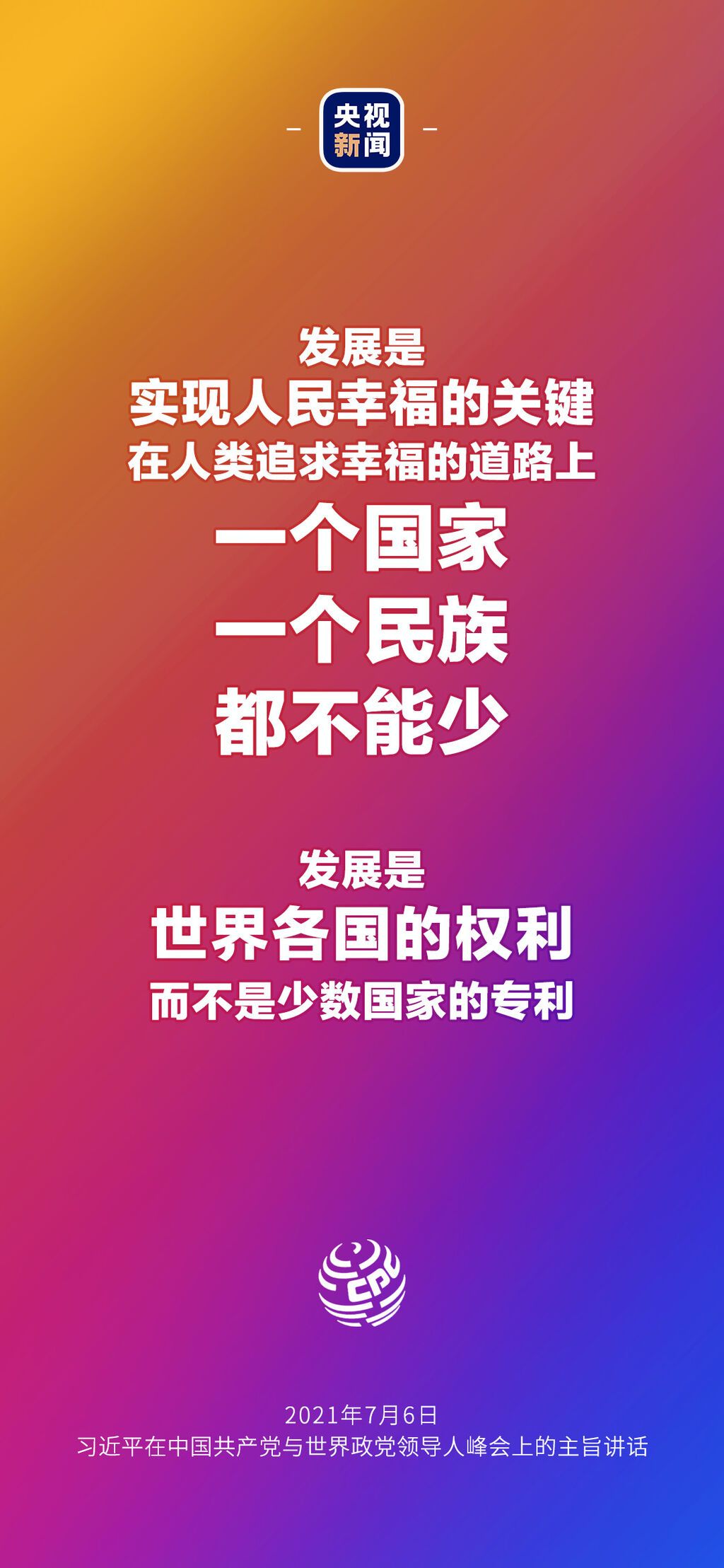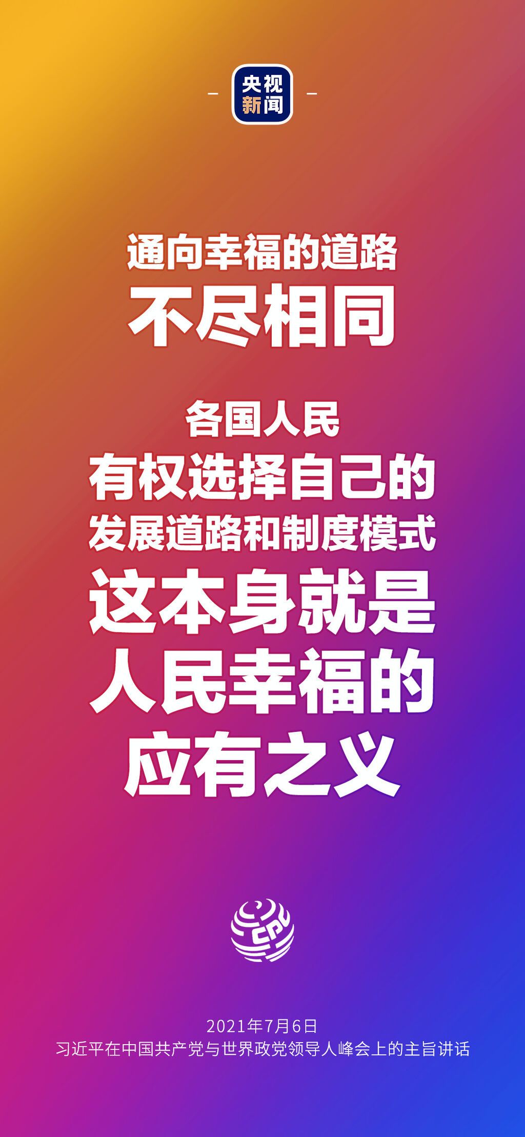 7月6日晚,中国共产党与世界政党领导人峰会以视频连线方式举行,160多个国家的500多个政党和政治组织的领导人以及逾万名政党代表出席了会议。中共中央总书记、国家主席习近平在北京出席会议并发表主旨讲话,讲话向世界传递了哪些中国声音?看梳理→