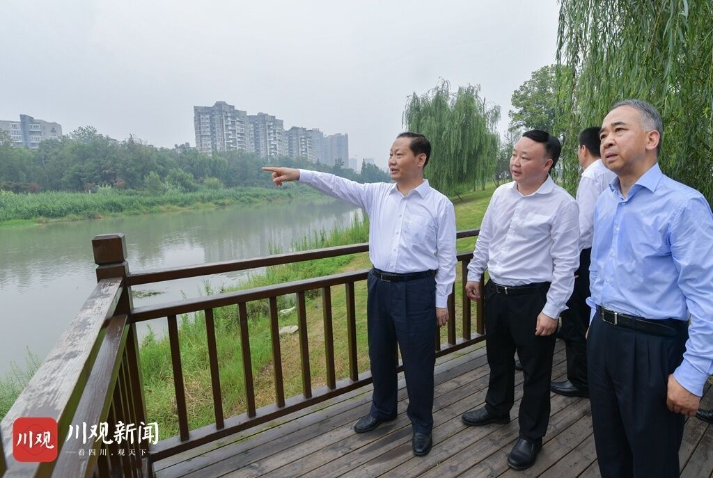 仪式结束后,彭清华来到新都区泥巴沱森林公园,听取全省及成都市扎实做好中央和省级环保督察反馈问题整改落实情况汇报,步行至毗河岸边察看水质改善及生态修复情况,询问了解开展流域水环境综合整治和跨区域联防联控巡查等工作。他说,打好碧水保卫战是成都建设践行新发展理念的公园城市示范区的应有之义,成都市及各区(市、县)要进一步提高政治站位,以更高标准、更严要求、更实举措抓好各江河流域系统治理。要全面落实河湖长制,强化跨区域协同保护,加强沿岸污水垃圾治理和入河排污口监管,抓好农业面源污染防治,持续改善水生态环境。生态环境保护是一项只有进行时、没有完成时的长期任务。要压紧压实政治责任,按照“清单制+责任制+销号制”要求,切实推动突出生态环境问题整改落实,确保生态环境质量改善不断取得可知可感的新成效。