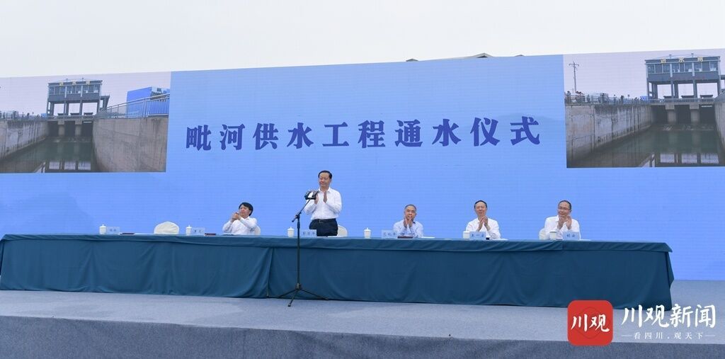 10时40分,彭清华宣布:毗河供水工程正式通水。随即,苟家滩引水枢纽开闸放水,河水沿干渠奔涌向百公里外的川中地区。