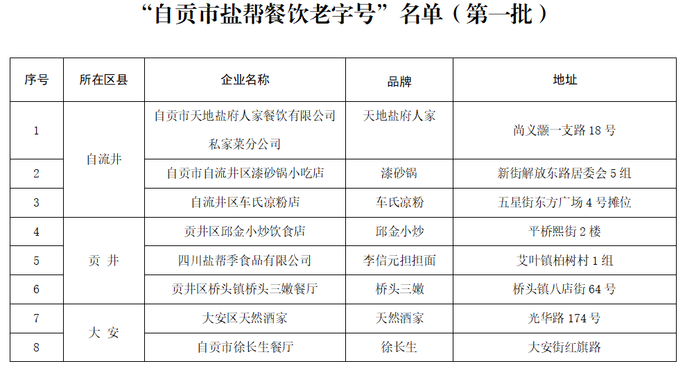 7月7日上午,记者从市商务局获悉,我市首批“自贡市盐帮餐饮老字号”公示结束,共有33家老字号榜上有名。