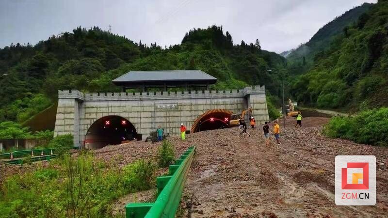 7月15日,受强降雨天气影响,雅康高速紫石隧道(天全段)断道,请过往车辆绕行G318线。