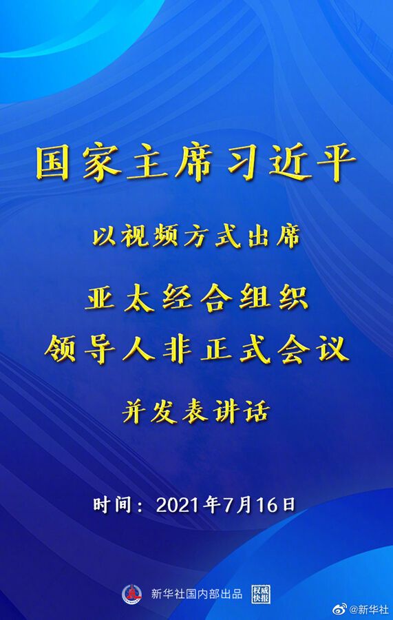 7月16日晚,国家主席习近平应邀在北京以视频方式出席亚太经合组织领导人非正式会议并发表讲话。