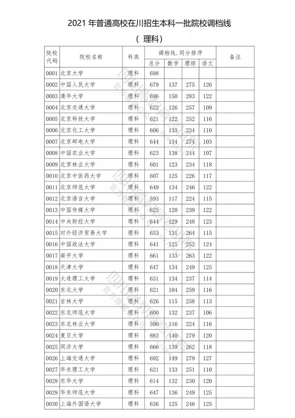 四川省2021年普通高校招生本科一批已于昨日投档。为方便广大考生和家长及时了解录取信息,省教育考试院按文、理科发布了今年普通高校在川招生本科一批院校调档线。