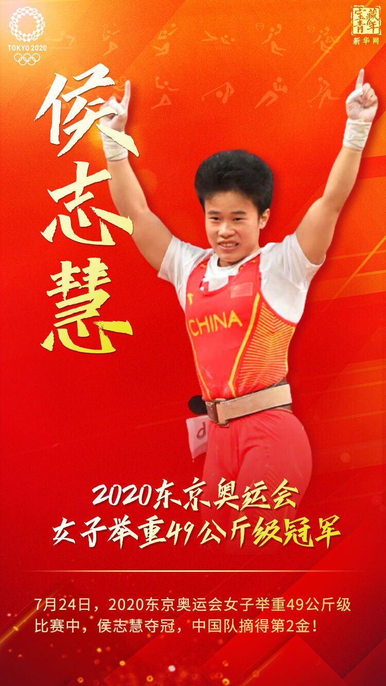 7月24日,侯志慧在东京奥运会女子举重49公斤级决赛中获得金牌。这是中国代表团在此次奥运会中获得的第2枚金牌,也是在举重项目的第1枚金牌。