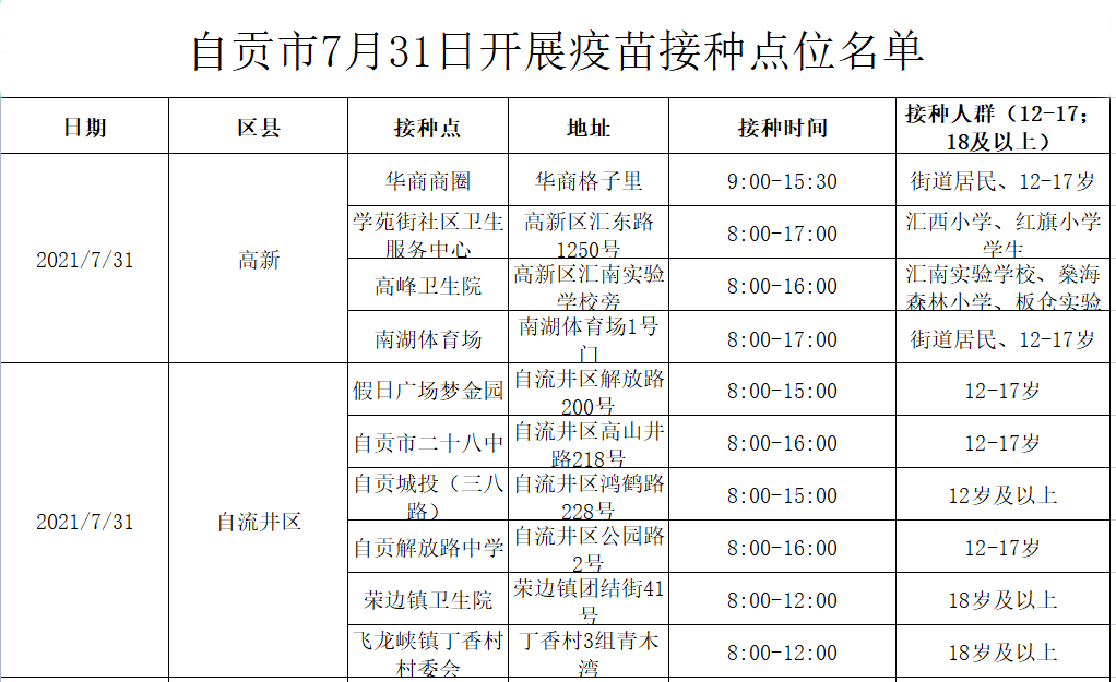 @要打疫苗的人:7月31日(明日)自贡这些地方可以打疫苗!