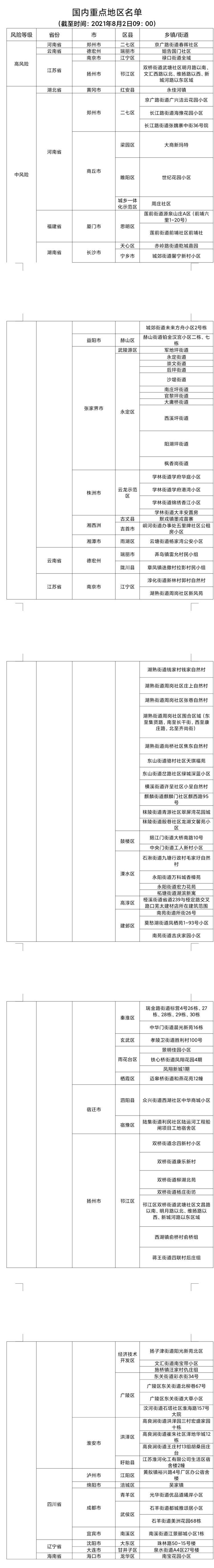 截至8月2日上午9时国内疫情重点地区名单