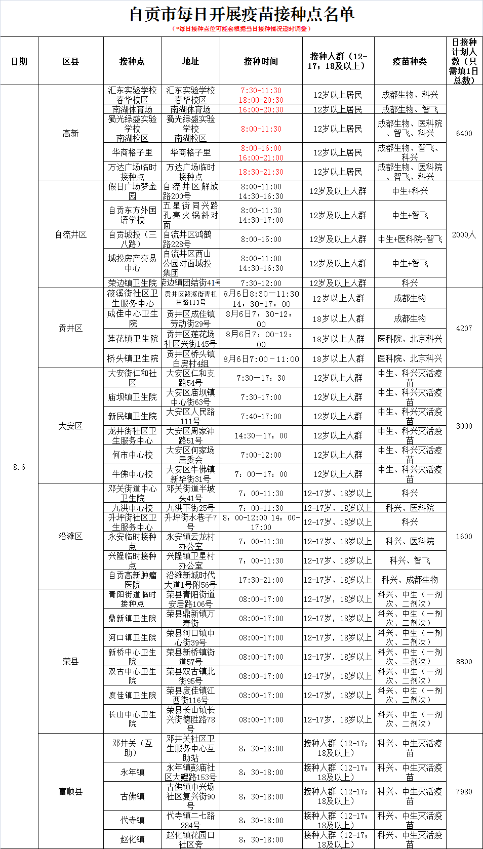 明(6)日我市将开放38个新冠病毒疫苗接种点。详见下表。