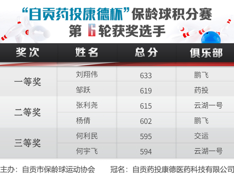 自贡药投康德杯”保龄球积分赛第6轮获奖选手
