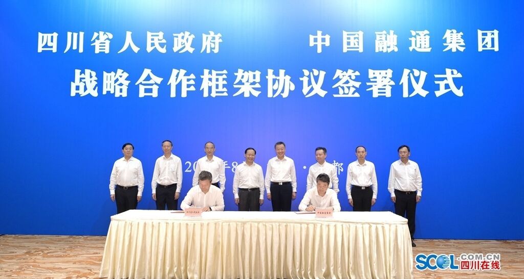 8月26日,四川省人民政府与中国融通集团在成都签署战略合作框架协议。省委书记彭清华,省委副书记、省长黄强会见中国融通集团董事长温刚、总经理马正武一行,并共同见证协议签署。