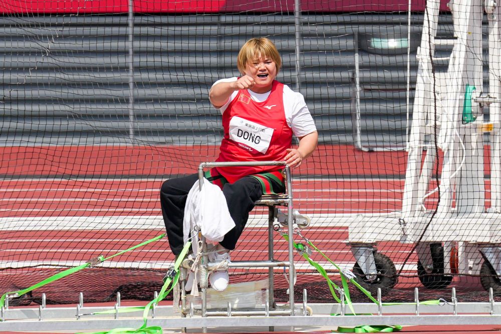 在女子铁饼F55级决赛中,里约残奥会该项目冠军董飞霞卫冕成功。夺冠成绩26米64比里约的夺冠成绩提高了1米61。邸东东在男子跳远T11级决赛中跳出6米47的个人赛季最好成绩,获得金牌。