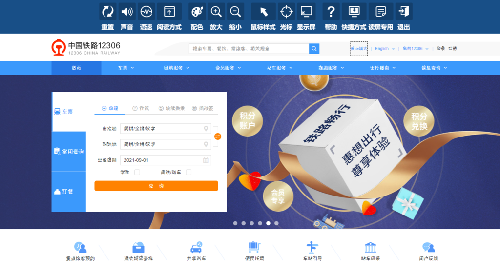 铁路12306科研团队认真对照国家关于适老化无障碍功能指引,结合广大旅客需求,制定了技术改造方案,进行了系统开发和安全测评,较好地实现了各项功能。在12306网站方面,支持读屏软件获取网页完整信息;提供无障碍辅助工具,支持放大缩小、调整配色、语音识读等功能;优化了登录验证码,提供滑块验证和短信验证两种形式。在12306手机App方面,支持手机读屏功能获取屏幕完整信息;优化登录验证码,提供滑块验证和短信验证两种形式;推出标准版和爱心版两种界面模式,爱心版交互更简单、操作更方便,同时具有大字体、大图标、高对比度等特点,标准版也增加了字体和对比度设置功能,用户可自行调整字体大小和对比度,用户可便捷切换标准版和爱心版。