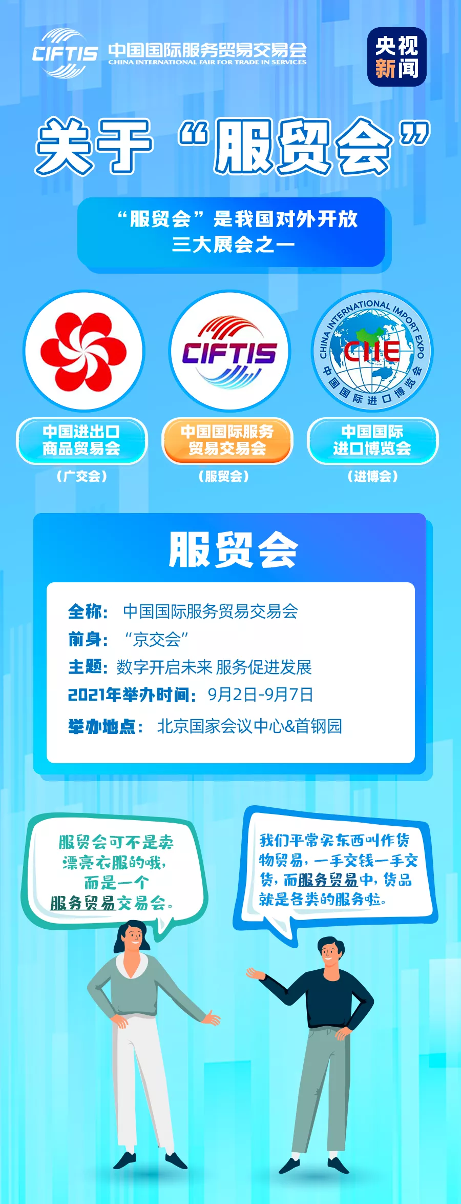 明天(9月2日),2021年中国国际服务贸易交易会(简称“服贸会”)将在北京开幕。关于服贸会,你了解多少?今年服贸会有哪些亮点?普通观众该如何购票参观?看下面一组图,了解↓↓↓