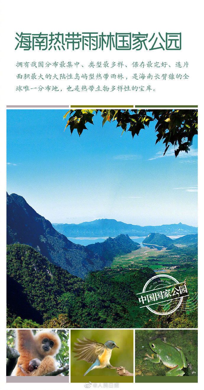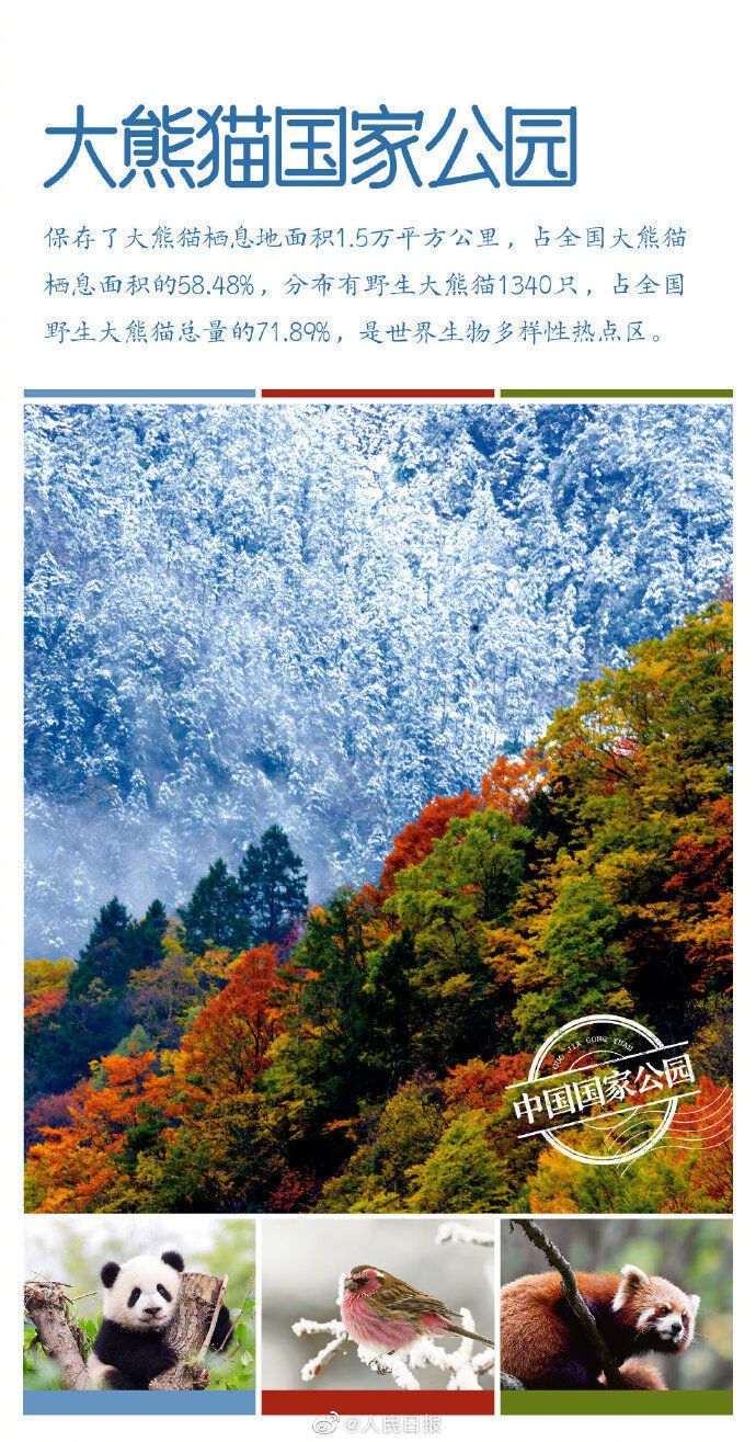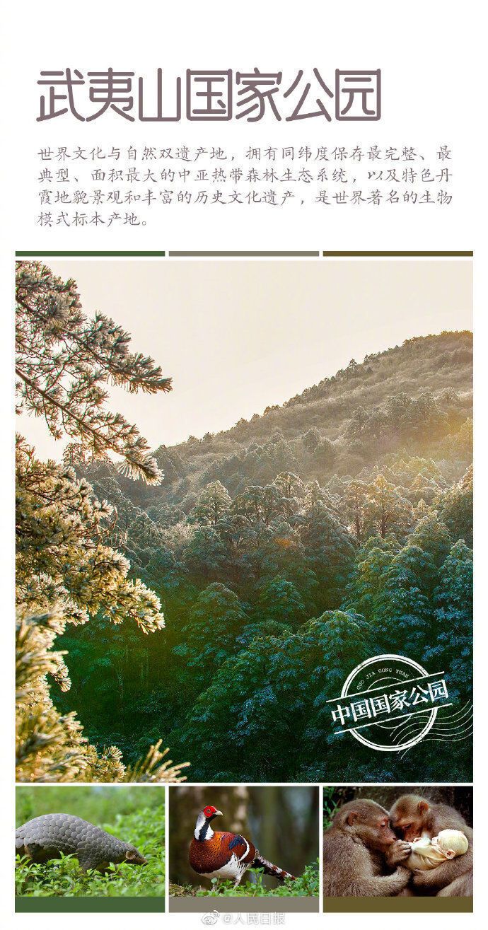 国家公园由国家确立并主导管理,是我国生态文明制度建设的重要内容。首批名单:三江源国家公园、大熊猫国家公园、东北虎豹国家公园、海南热带雨林国家公园、武夷山国家公园。