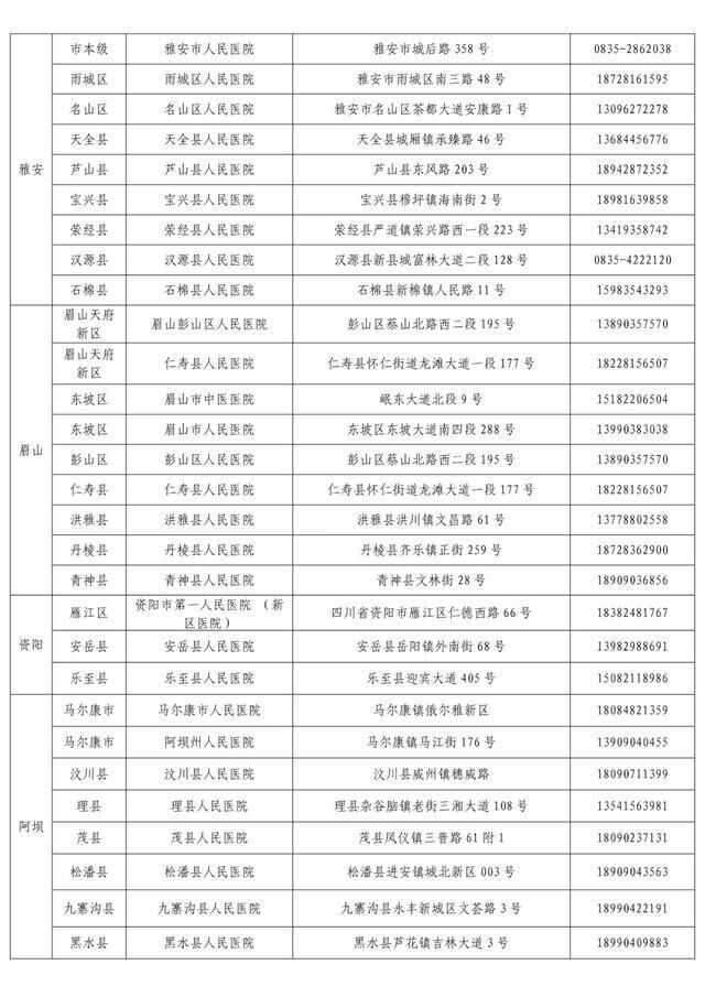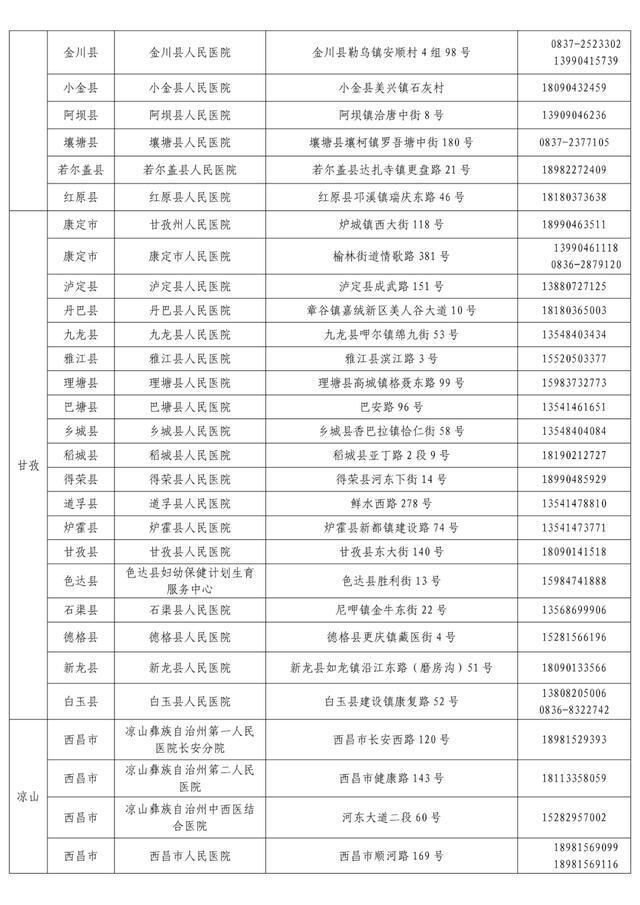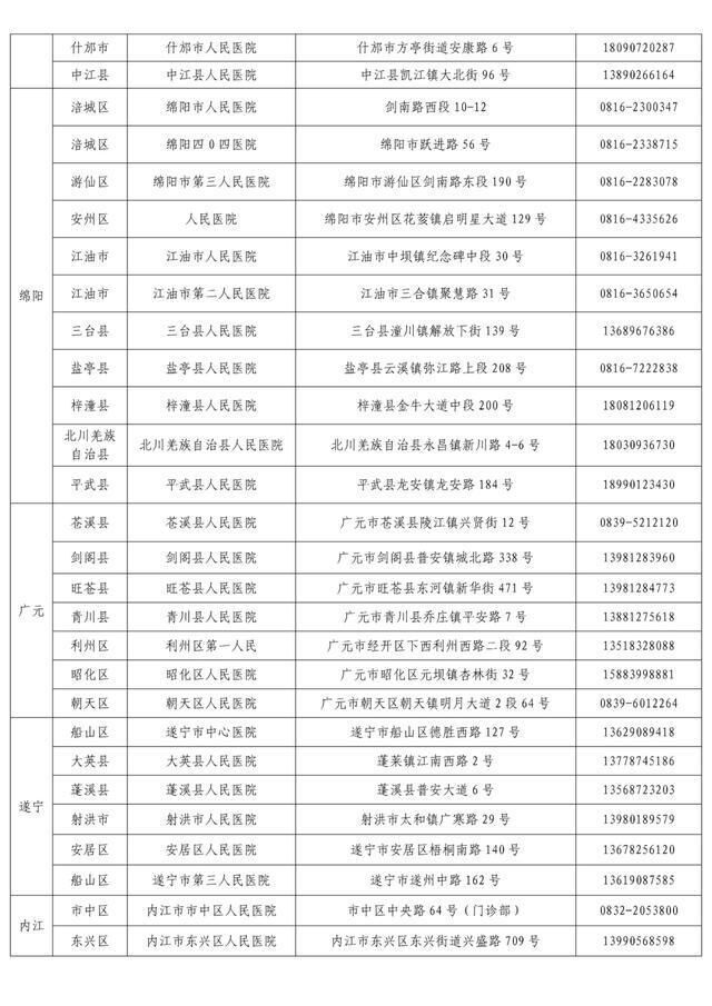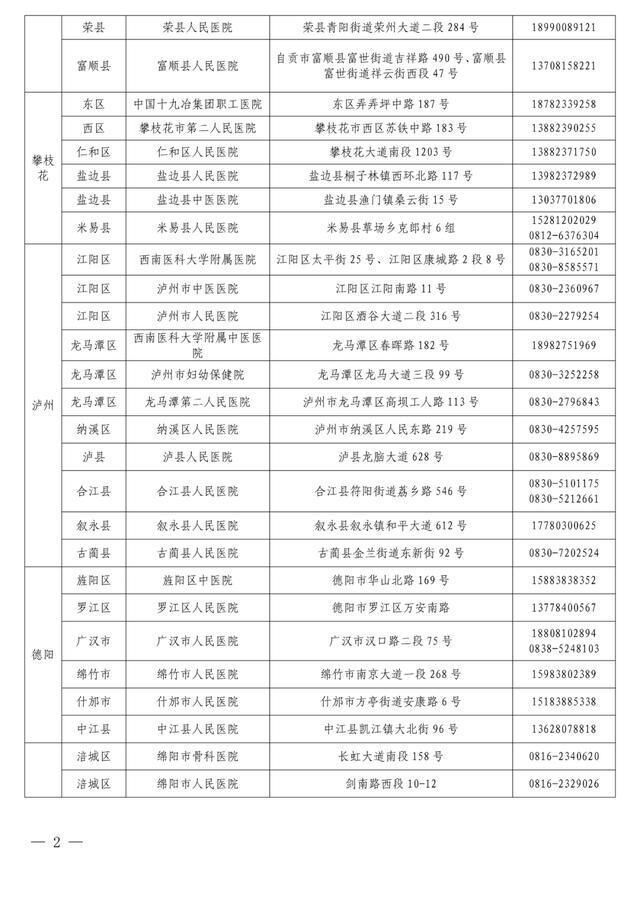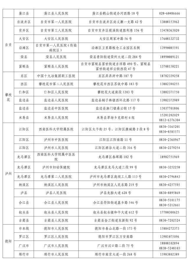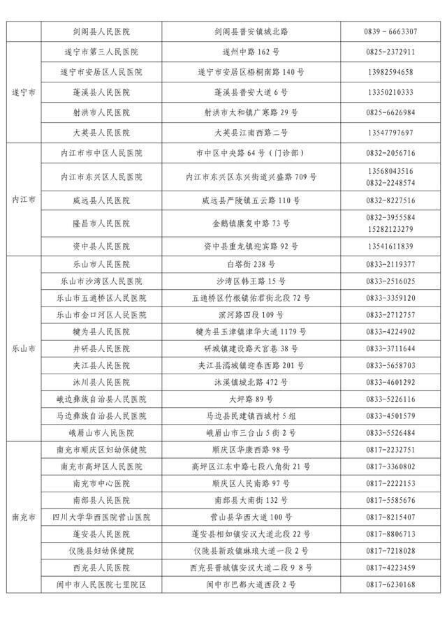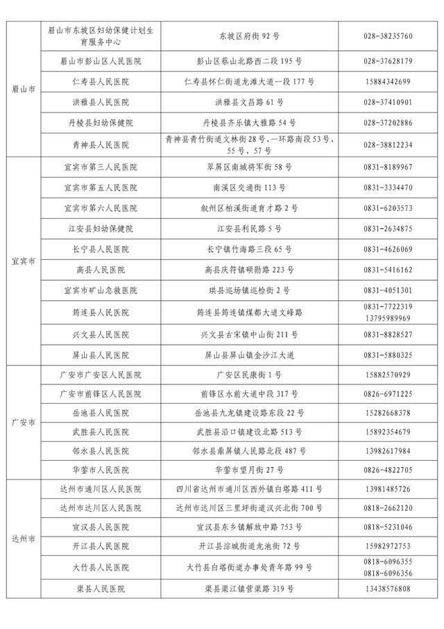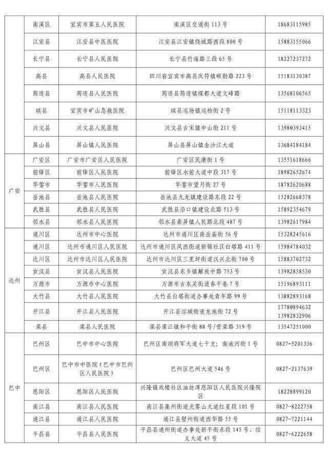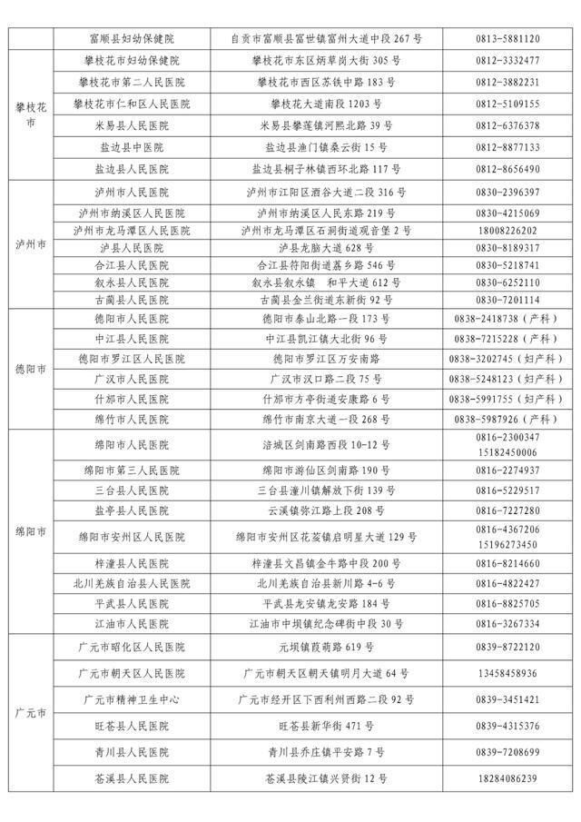 “黄码”孕产妇就诊定点医疗机构名单