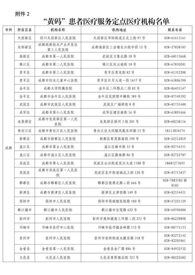 “黄码”患者医疗服务定点医疗机构名单