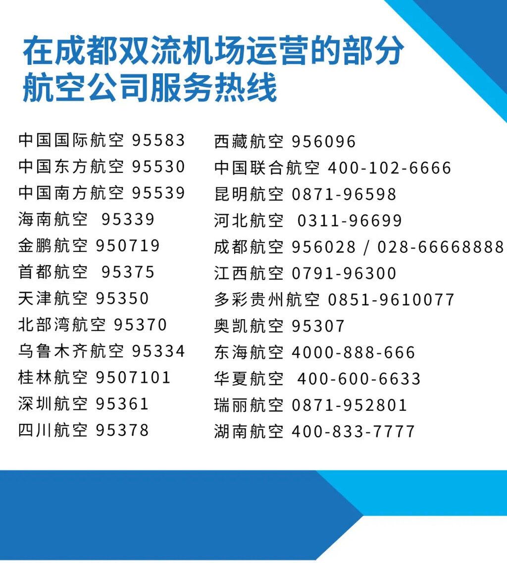 双流机场提醒:根据疫情防控形势变化,各地疫情防控措施将会动态调整,请旅客出发前向所乘坐的航空公司、目的地疫情防控部门提前了解最新疫情防控政策,准备好相关查验材料,出行途中做好个人防护,配合工作人员出示相关资料,文明出行。