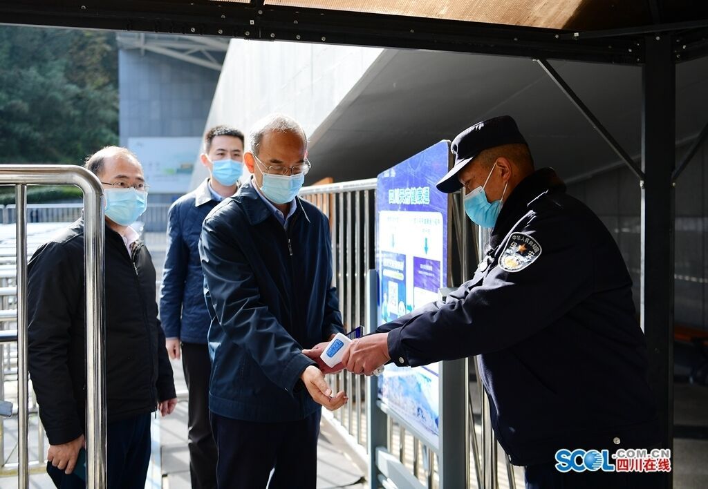当日上午,黄强以“四不两直”方式前往大邑县西岭雪山景区察看疫情防控措施落实情况,提醒食品摊贩和施工人员坚持佩戴口罩,叮嘱景区切实做好游客佩戴口罩、扫码测温等引导工作,提高电梯扶梯、缆车等消杀频次,实行出入口分离、游客分隔就餐,严格落实森林防灭火举措。他还认真了解景区经营情况,要求加快景区改造提升工作,为旅游旺季到来做好准备,并要求大邑县加强景区道路沿线线缆整治,进一步消除安全隐患、美化环境。