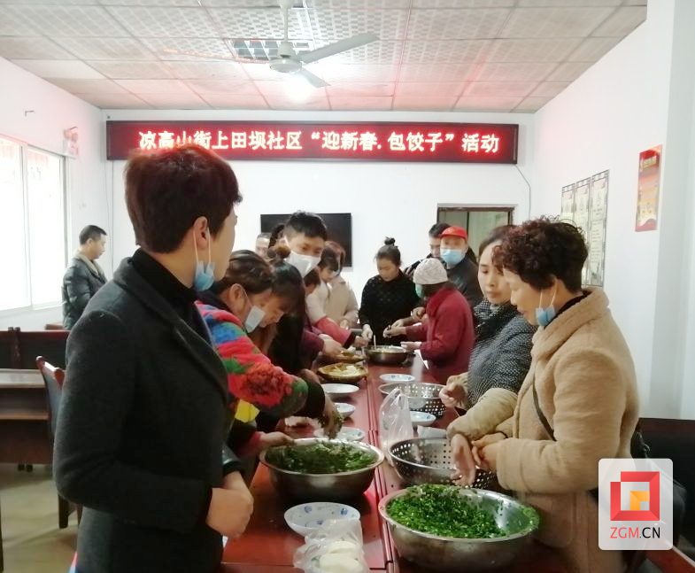 2月6日,为增添年味,上田坝社区举办了“迎新春·包饺子”活动。一大早,社区工作人员和居民代表就忙碌起来:洗菜、切菜、调料、调馅、包饺子……大家有说有笑,一边包饺子,一边拉家常,热闹非凡。