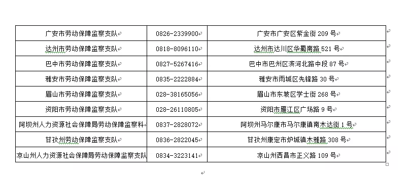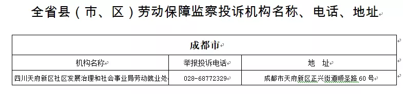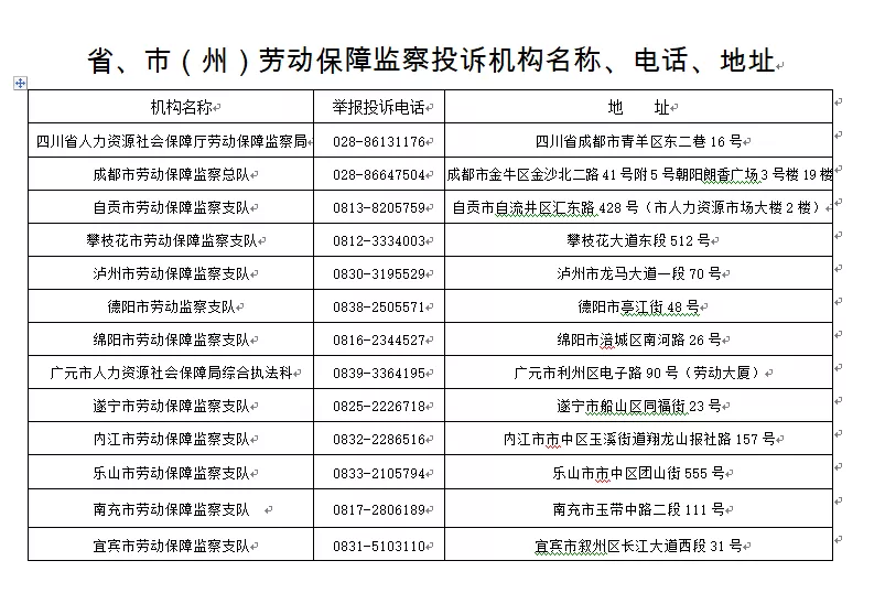 四川省劳动保障监察投诉机构电话